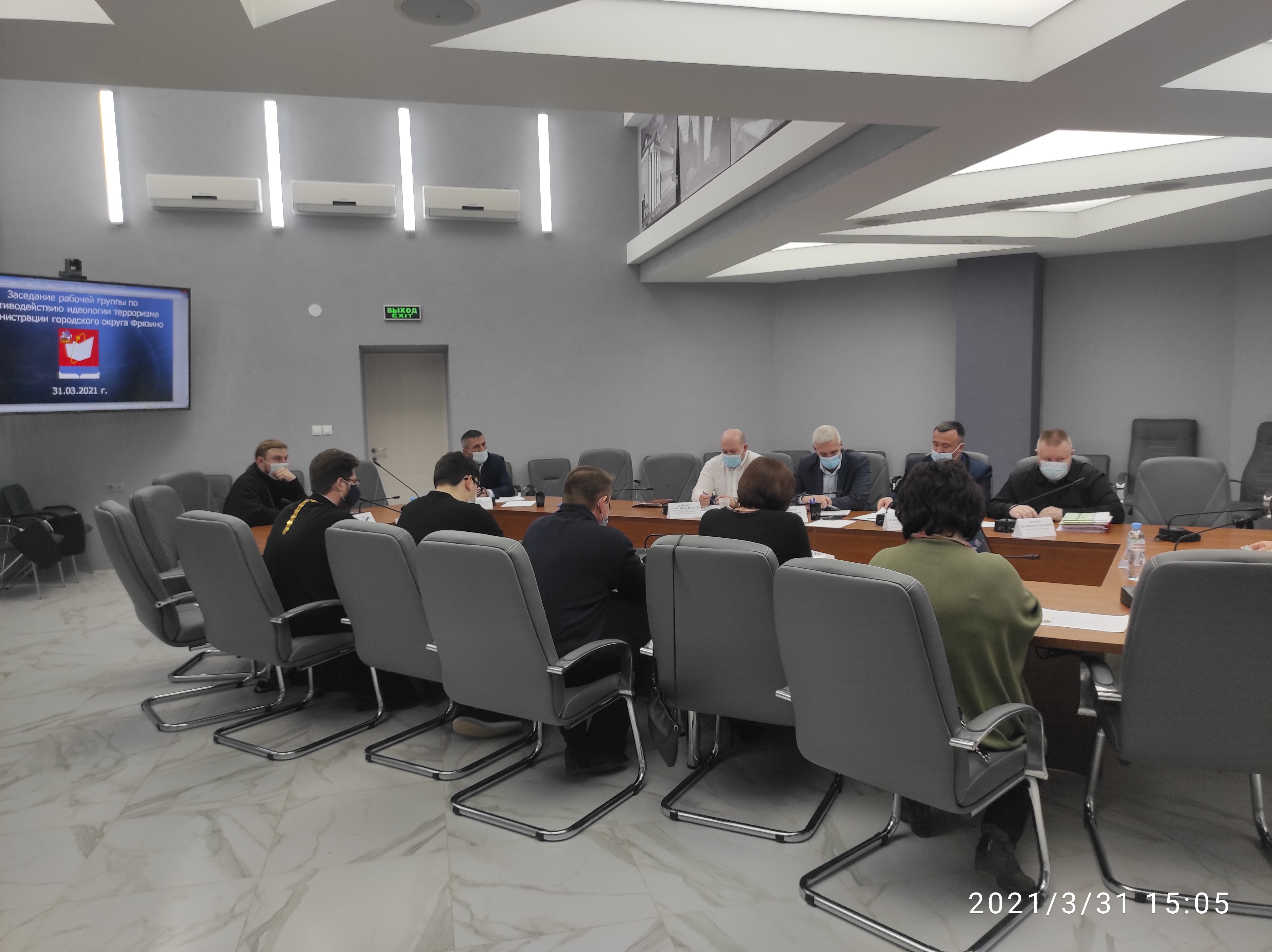 В ходе заседания были заслушаны руководители Управления образования, Управления культуры, спорта и молодежной политики, МБУ СШ «Олимп», отеля «Планета iQ» ООО «Астеро». По рассмотренным вопросам приняты решения, определены сроки их выполнения. 28.04.2021 года на заседании антитеррористической комиссии под председательством Главы городского округа Фрязино Воробьева Дмитрия Ричардовича, при участии представителей силовых и надзорных органов, настоятелей православных храмов городского округа Фрязино, обсуждены вопросы проведения праздничных мероприятий, посвященных Пасхе, Победы в Великой Отечественной войне 1941-1945 годов, Дня России с учетом действующих ограничений и рекомендаций Роспотребнадзора. В ходе рассмотрения вопроса об эффективности принимаемых мер по обеспечению антитеррористической защищенности объектов образования, здравоохранения, культуры, религиозных организаций, а также мест массового пребывания людей и их соответствии требованиям законодательства и рекомендациям федеральных органов исполнительной власти в установленной сфере деятельности обсужден алгоритм действий при получении «спам» угроз террористического характера. Противодействие идеологии терроризма – одно из основных и важнейших направлений 31.03.2021 года под председательством Первого заместителя главы администрации городского округа Фрязино Бощевана Н.В. состоялось заседание рабочей группы по противодействию идеологии терроризма. При участии руководителей управления безопасности, образования, культуры, спорта и молодежной политики, комиссии по делам несовершеннолетних, «Дирекции Наукограда», отдела полиции по г.о. Фрязино, представителей религиозных организаций городского округа Фрязино обсуждены вопросы организации и проведения воспитательных и культурно-просветительских мероприятий, направленных на развитие у детей и молодежи неприятия идеологии терроризма и привитие им традиционных российских духовно-нравственных ценностей, а также привлечения к указанной работе представителей религиозных, общественных, спортивных организаций и психологов. 03.03.2021 года под председательством Главы городского округа Фрязино Воробьева Дмитрия Ричардовича проведено очередное заседание антитеррористической комиссии городского округа Фрязино. В работе комиссии приняли участие руководители и представители 3 отделения 1 окружного отдела УФСБ России по городу Москве и Московской области, администрации городского округа Фрязино, отдела полиции по городскому округу Фрязино МУ МВД России «Щёлковское», отдела надзорной деятельности по Щелковскому району Управления надзорной деятельности Главного управления МЧС России по Московской области, МКУ «ЕДДС г. Фрязино». В ходе заседания, при участии руководителей «МАП №11 филиал АО «Мострансавто» г. Балашиха и ж/д станции «Фрязино» ОАО «Московско-Курского центра организации работы железнодорожных станций», рассмотрен вопрос обеспечения безопасности объектов транспортной инфраструктуры, расположенных на территории городского округа, в том числе интеграции объектовых систем видеонаблюдения в систему технологического обеспечения региональной общественной безопасности и оперативного управления «Безопасный регион». С руководителями Управления образования, Управления культуры, спорта 