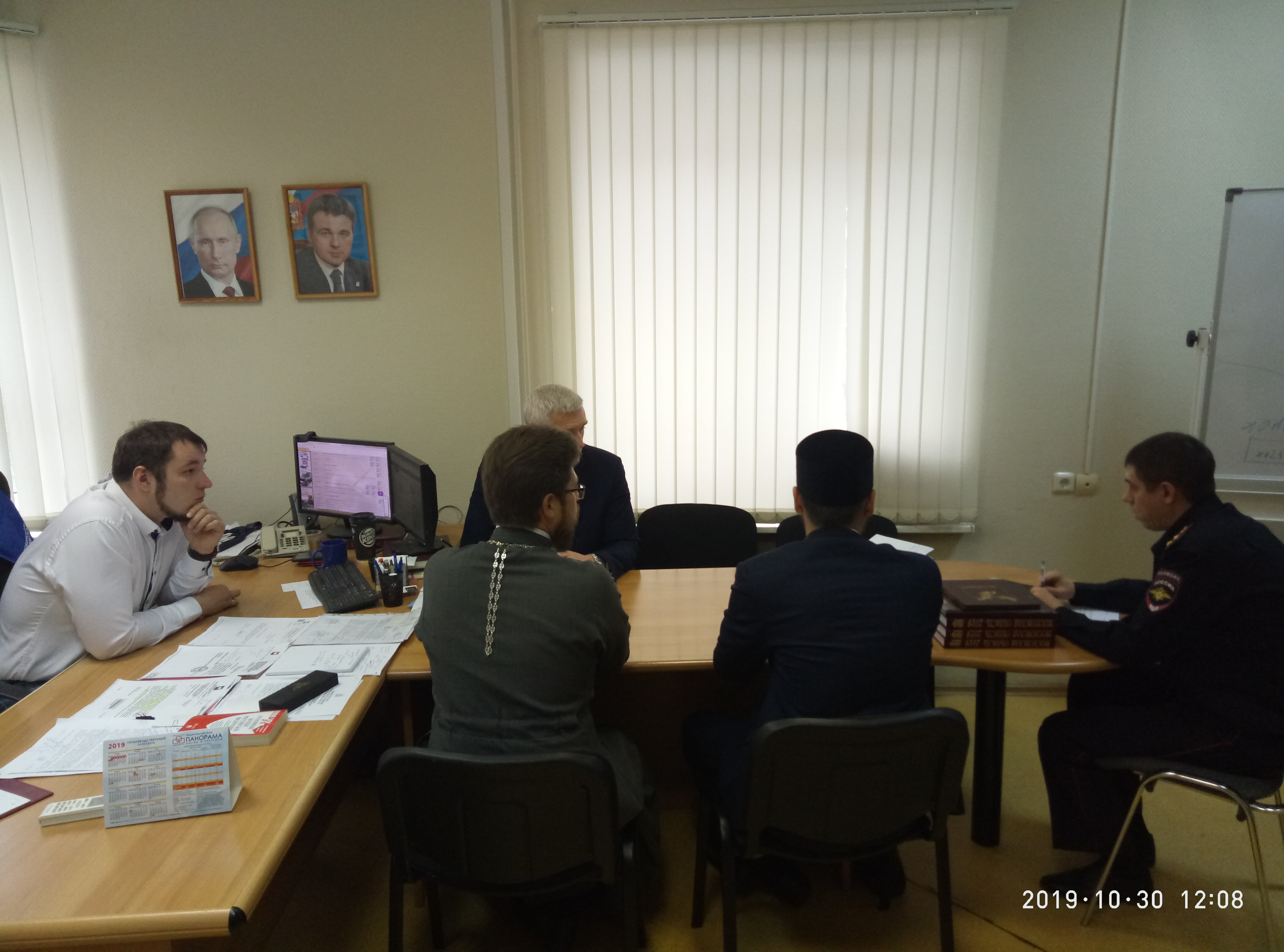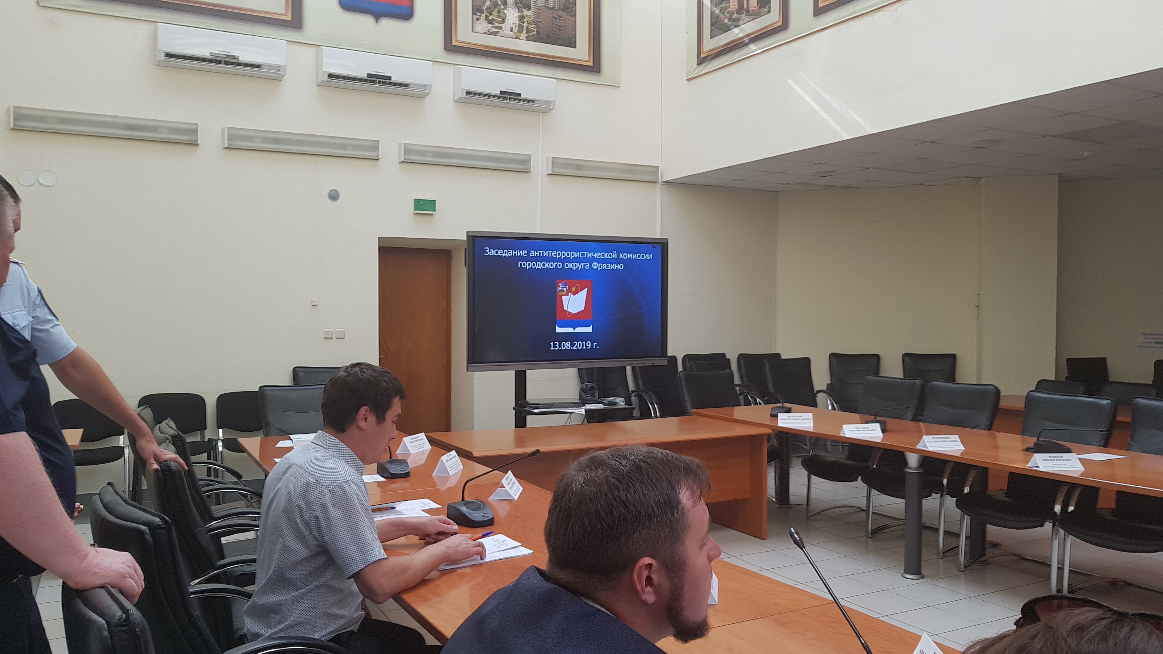 Заседания АТК в 2019 годуОчередное заседание антитеррористической комиссии 17.12.2019 17.12.2019 под председательством Главы городского округа Фрязино Бочарова К.В., с участием представителя Щелковской городской прокуратуры, состоялось очередное заседание антитеррористической комиссии городского округа Фрязино. В ходе заседания рассмотрены вопросы по мероприятиям антитеррористической защиты при подготовке к Новому году, Рождеству Христову и Крещению; подведены итоги работы Комиссии за 2019 год; рассмотрен План работы на 2020 год, а также внесены изменения в Перечень мест массового пребывания людей, расположенных на территории городского округа Фрязино Московской области. Внеочередное заседание антитеррористической комиссии 20.11.2019 20.11.2019 под председательством Главы городского округа Фрязино Бочарова К.В., при участии временно исполняющего обязанности начальника ОЛРР по Щелковскому району ГУ Росгвардии по Московской области Остапова И.А., проведено внеочередное заседание антитеррористической комиссии городского округа Фрязино Рассмотрен вопрос о состоянии профессиональной физической охраны на муниципальных объектах, а также обсуждены результаты работы межведомственной комиссии Московской области по изучению антитеррористической деятельности в городском округе Фрязино. «Круглый стол» 30 октября 2019 года 30 октября 2019 года аппаратом антитеррористической комиссии городского округа Фрязино при участии заместителя главы администрации городского округа Фрязино Егорова А.Д., заместителя начальника отдела полиции по г.о. Фрязино Филимонова В.И. проведен «Круглый стол» с настоятелями Храма Рождества Христова и Державного храма г. Фрязино, а также председателем местной религиозной организации мусульман города Фрязино. В ходе встречи обсуждались вопросы соблюдения миграционного законодательства Российской Федерации и реализации Постановления Правительства Российской Федерации от 05.09.2019 №1165 «Об утверждении требований к антитеррористической защищенности объектов (территорий) религиозных организаций и формы паспорта безопасности объектов (территорий) религиозных организаций» 3 сентября 2019 года, в День солидарности в борьбе с терроризмом в городском округе Фрязино проведены памятные мероприятия В образовательных учреждениях городского округа прошли торжественные линейки, конкурсы детского рисунка. Проведен митинг с возложением цветов к Мемориалу воинам и участникам локальных конфликтов, в котором приняли участие Глава городского округа Фрязино К.В. Бочаров, заместитель главы городского округа Фрязино А.Д. Егоров, член Правления Фрязинского городского отделения Всероссийской общественной организации ветеранов «Боевое братство» Е.А. Малемин, настоятель храма иконы Божией Матери «Державная» города Фрязино священник Дмитрий Третьяков, воины-интернационалисты. Заседание антитеррористической комиссии 13.08.2019 13.08.2019 под председательством Главы городского округа Фрязино состоялось заседание антитеррористической комиссии городского округа Фрязино Московской области. В ходе заседания были рассмотрены вопросы подготовки учебных учреждений к новому учебному году, дополнения для внесения в перечень мест массового пребывания людей, вопросы противодействия попыткам совершения террористических актов, нелегально