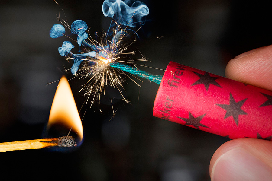 Бытовые пиротехнические изделия представляют собой устройства, предназначенные для создания световых или дымовых эффектов при проведении праздничных салютов и фейерверков. Пожарная опасность этих изделий состоит в том, что их применение сопровождается наличием открытого пламени, искр, а некоторые изделия движутся в различных направлениях на достаточно большие расстояния (до 40 м). Зажигающая способность искр и пламени от пиротехнических изделий достаточно высокая, температура при горении пиротехнических зарядов некоторых изделий превышает 2000°С. В соответствии с Правилами пожарной безопасности продажа пиротехнических изделий разрешается в специализированных магазинах или отделах, которые должны располагаться на верхних этажах зданий и не примыкать к эвакуационным выходам. Не допускается их размещение и в подвалах. Хранить пиротехнику дома в больших количествах запрещено, нарушение данного требования может привести к несчастным случаям или пожару. Покупать пиротехнику имеют право исключительно взрослые, дети могут пользоваться ими только под присмотром родителей. Рекомендации при покупке пиротехники: Приобретать пиротехнические изделия следует только в специализированных отделах магазинов, но, ни в коем случае не приобретать пиротехнику на рынках, где не соблюдаются условия хранения. Из-за несоблюдения температурных режимов, влажности приобретенная пиротехника может не сработать или сработать в руках. Изделия должны иметь сертификаты соответствия, а также подробные инструкции по применению. Инструкция по применению должна содержать следующие сведения: - наименование бытового пиротехнического изделия; - условия применения; - ограничения при обращении; - способы безопасной подготовки, пуска и утилизации; - правила хранения в быту; - гарантийный срок и дату изготовления; - предупреждение об опасности бытового пиротехнического изделия; - действия в случае отказа и возникновения нештатных ситуаций; - действия в случае пожара; - реквизиты изготовителя; - информацию по сертификации и другие сведения, обусловленные спецификой изделия. Инструкция должна быть на русском языке, текст – четким и хорошо различимым. Предупредительные надписи выделяют шрифтом или содержат слово «Внимание!». На каждой упаковке и изделии должны быть указаны: наименование изделия; торговая марка; дата изготовления, а также текст: «Внимание! Изделие пожаро- и травмоопасно! Не применять до ознакомления с прилагаемой инструкцией! Беречь от детей! Не использовать пиротехническое изделие с истекшим сроком хранения. Хранить в сухом месте при температуре не более 300С, вдали от нагревательных приборов. Продажа детям до 14 лет запрещена». При использовании пиротехники запрещается: - использовать пиротехнические изделия в закрытых помещениях, квартирах, запускать фейерверки с балконов и лоджий; - использовать изделия с истекшим сроком годности или с видимыми признаками повреждений (нарушения упаковки); - производить любые действия, не предусмотренные инструкцией по применению, а также разбирать и переделывать пиротехнические изделия; - сушить намокшие пиротехнические изделия на отопительных приборах и возле открытого огня; - запускать изделия с рук и подходить к изделиям ранее, чем через 5 минут после прекращения их работы; - держать фитиль в