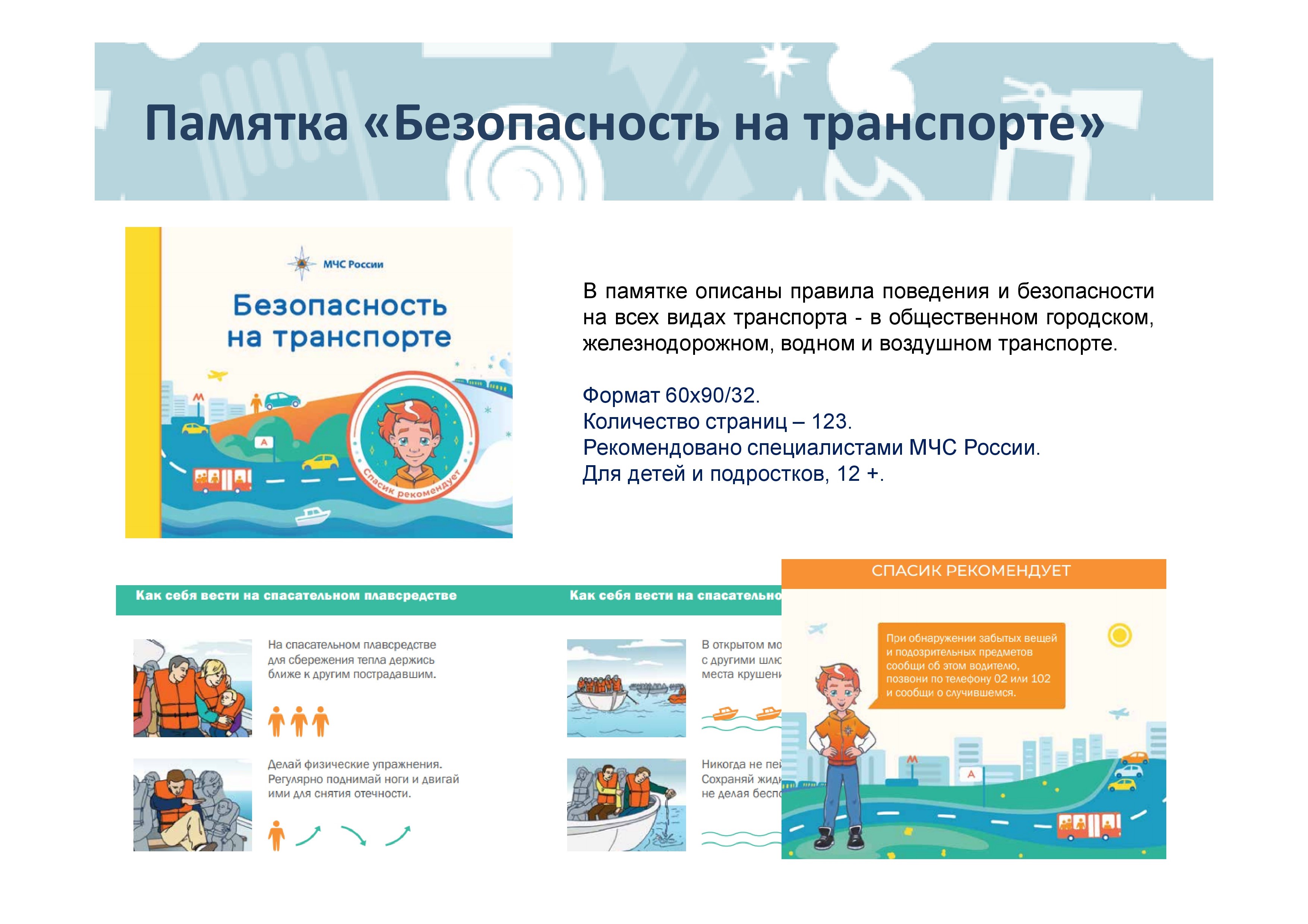 «Спасик рекомендует»Федеральным автономным учреждением "Информационный центр общероссийской комплексной системы информирования и оповещения населения в местах массового пребывания людей" при поддержке МЧС России разработана серия детских памяток "Спасик рекомендует" по темам "Пожарная безопасность", "Безопасность на транспорте", "Безопасность на водных объектах" |