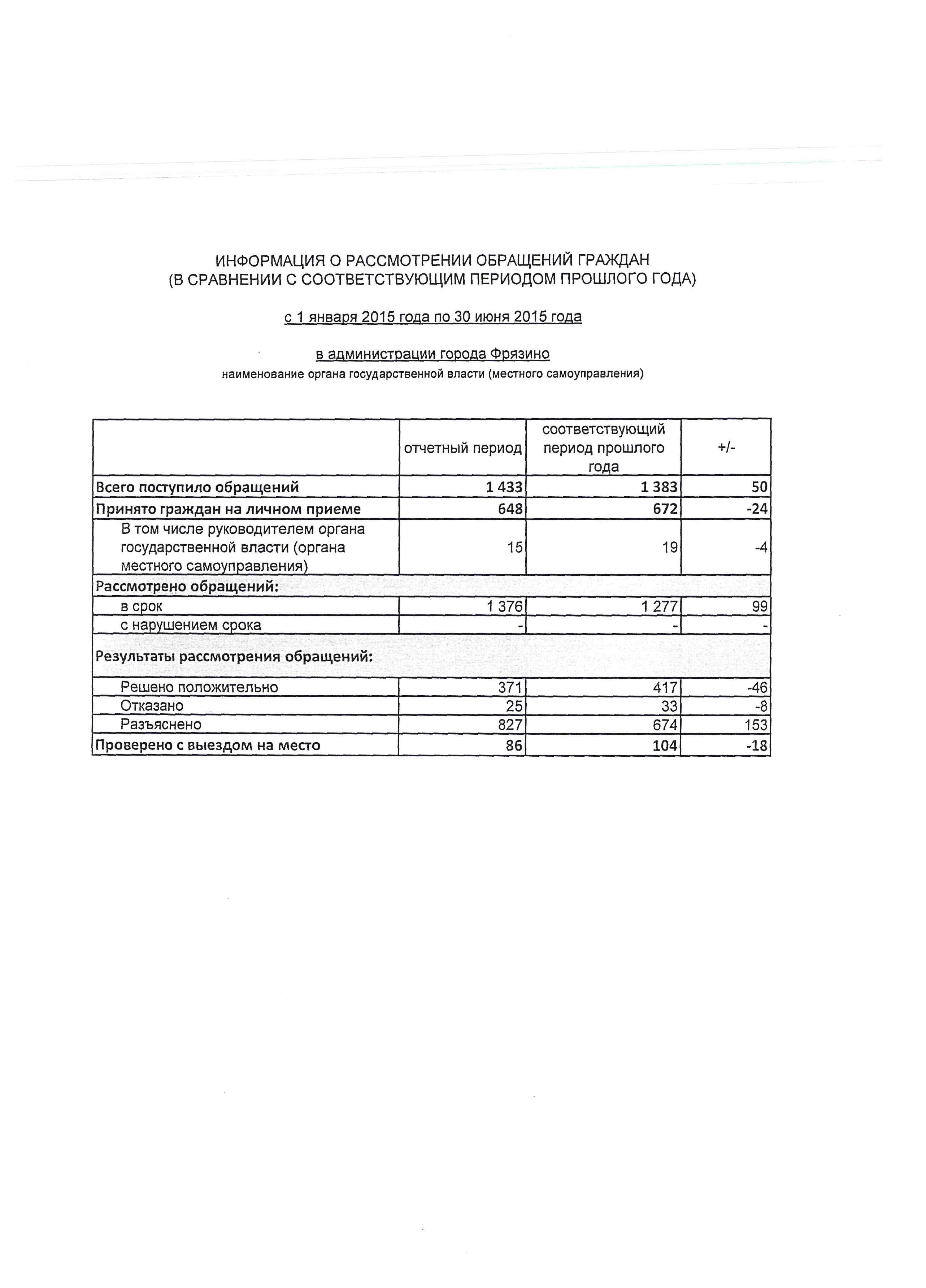 Отчет по работе с обращениями граждан за первое полугодие 2015 год