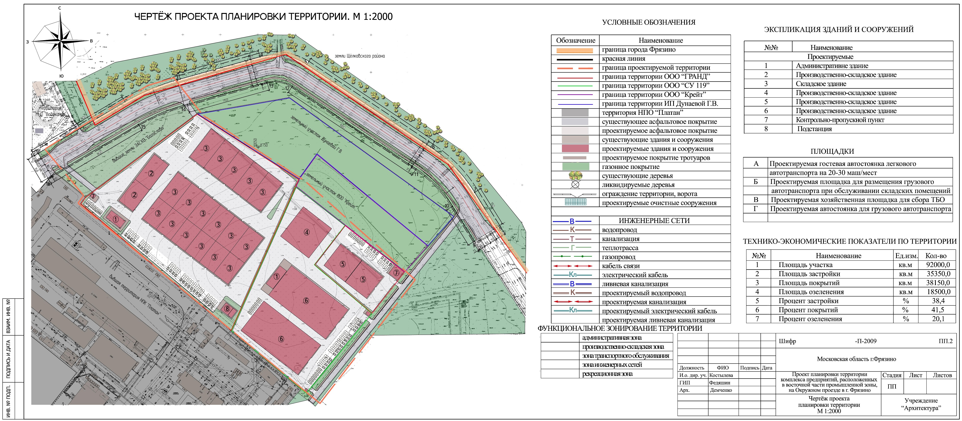 Проект планировки территории комплекса предприятий, расположенных в восточной части промышленной зоны на Окружном проезде в г. Фрязино.