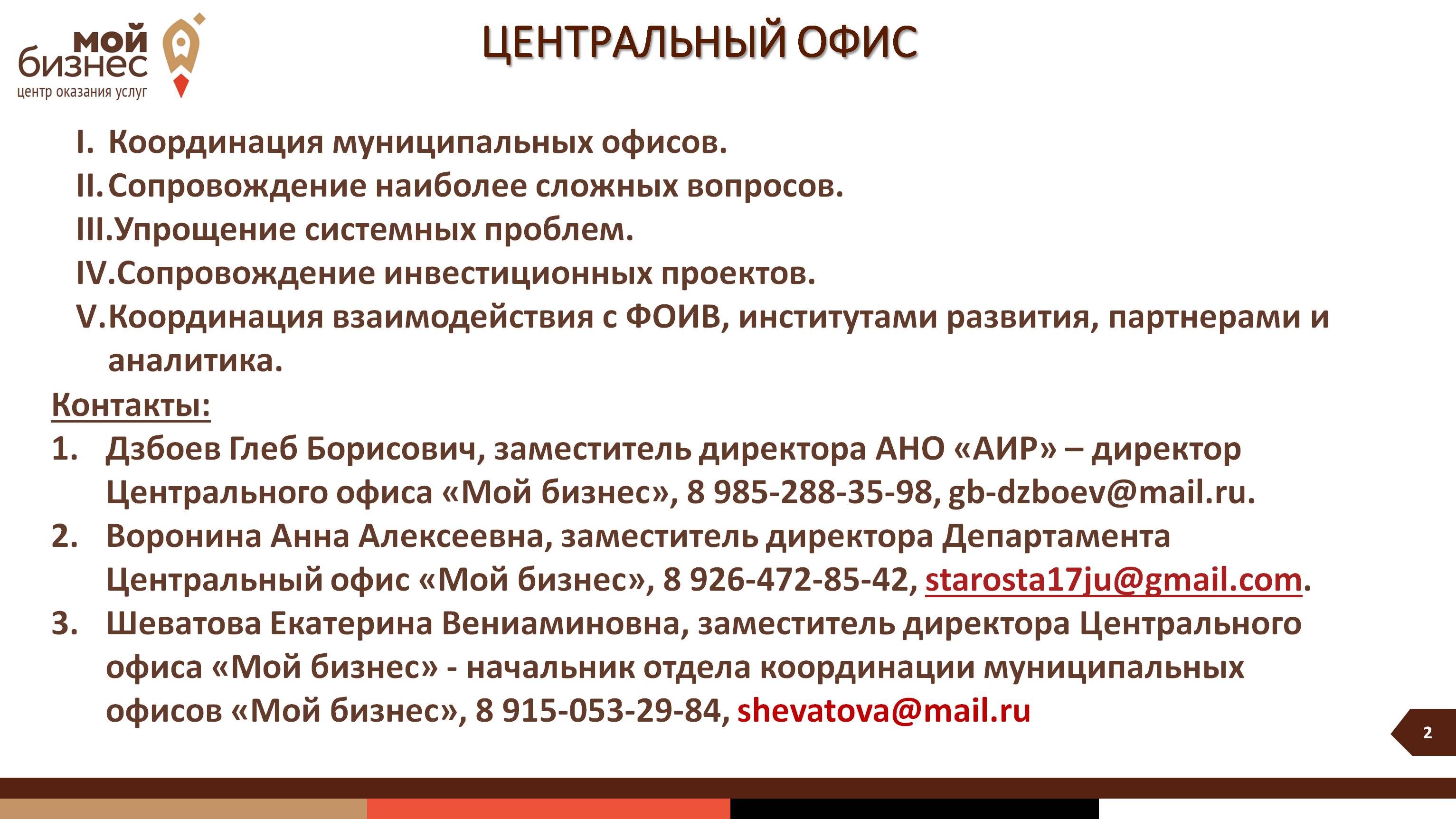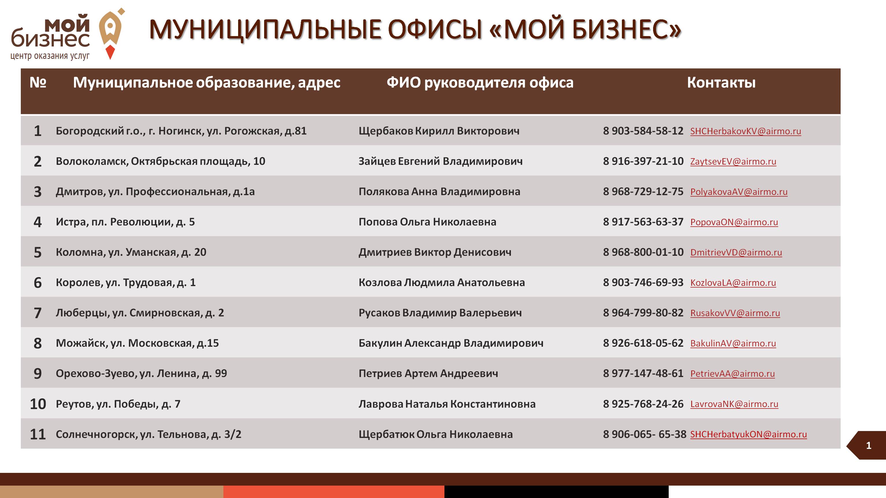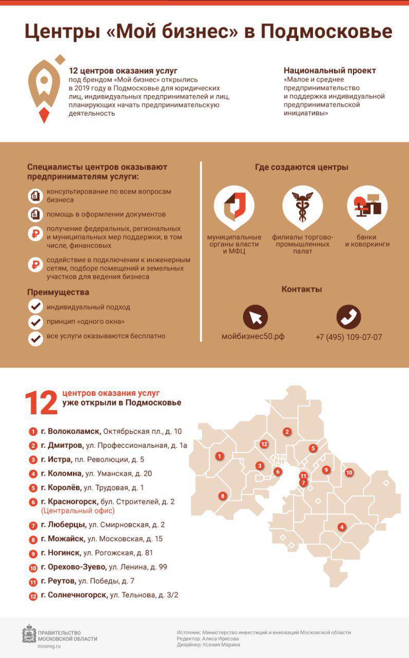 В Московской области реализуется региональный проект «Акселерация субъектов малого и среднего предпринимательства»В рамках национального проекта «Малое и среднее предпринимательство и поддержка индивидуальной предпринимательской инициативы» в Московской области реализуется региональный проект «Акселерация субъектов малого и среднего предпринимательства». Данный проект предусматривает создание Центров «Мой бизнес» на территории Московской области, в рамках которого будут реализованы следующие мероприятия: - объединение на единой площадке функций по предоставлению услуг субъектам малого и среднего предпринимательства (далее – МСП), созданных и уже действующих объектов инфраструктуры поддержки МСП; - создание цифровой платформы, ориентированной на информационную поддержку производственной и сбытовой деятельности субъектов МСП; - реализация программы «выращивания» поставщиков - субъектов МСП в целях их потенциального участия в закупках товаров, работ, услуг крупнейших заказчиков; - оказание консультационных и инжиниринговых услуг субъектам МСП. Распоряжением Правительства Московской области от 29.01.2019 № 43-РП (в ред. от 26.03.2019 № 213-РП) создана автономная некоммерческая организация «Агентство инвестиционного развития Московской области» (далее - АНО «АИР»), в рамках которого сформировано 12 офисов «Мой бизнес»: центральный офис и 11 муниципальных офисов (список прилагается), работа по их созданию будет продолжена. Основные мероприятия, планируемые к проведению в рамках центрального офиса АНО «АИР»: - координация муниципальных офисов «Мой бизнес» (открытие, обучение, единый стандарт, контроль качества); - содействие в решении сложных индивидуальных вопросов; - выявление и устранение системных проблем; - сопровождение ключевых инвесторов. Услуги, оказываемые центральным и муниципальными офисами «Мой бизнес», в рамках регионального проекта определены Приказом Минэкономразвития России от 14.03.2019 № 125 (перечень услуг прилагается), в том числе: - содействие в подключении к энергосетям; - сопровождение в решении земельно-имущественных вопросов; - взаимодействие с КНО и ЦСС; - проведение обучающих программ для МСП; - предложение «коробочных решений» для начала и ведения бизнеса; - консультирование по мерам поддержки бизнеса; - помощь в оформлении документов. Планируется поэтапное введение услуг из вышеуказанного перечня. Успешность реализации регионального проекта будет определяться достижением показателя «Количество субъектов МСП и самозанятых граждан Московской области, получивших поддержку в рамках регионального проекта «Акселерация субъектов МСП», тыс. человек (нарастающим итогом). Учет заявок участников проекта ведется в системе CRM.