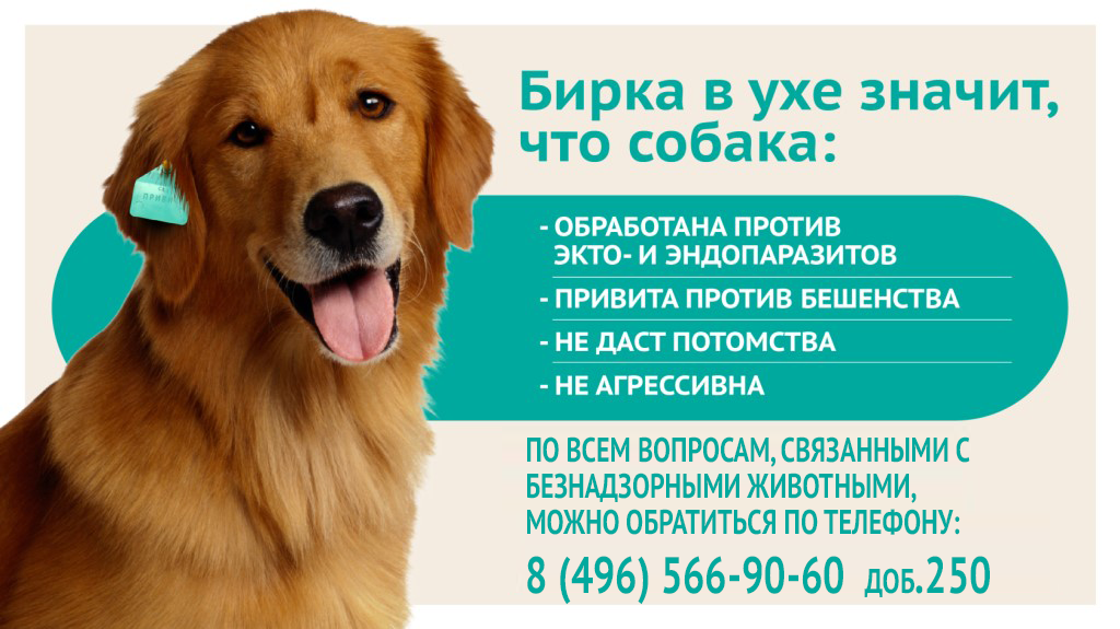 Вакцинация от бешенства животных проводится бесплатно, это можно сделать: - в государственной ветеринарной клинике; - в мобильном пункте. Когда мобильный пункт приедет к вам можно узнать у Единого колл-центра Госветслужбы Подмосковья по телефону 8(495)668-01-25 или на сайте ГБУВ МО «Территориальное ветеринарное управление №3» Также ветеринарные врачи рекомендуют начать противоклещевую обработку питомцев. Наиболее действенное сочетание спрей+капли+таблетки и специальный ошейник. При обнаружении на своём питомце незваного гостя, необходимо обратиться к специалисту и в течении 10-15 дней наблюдать за состоянием питомца. Информация для хозяйствующих субъектов о вреде и опасности нахождения в общественных местах животных без владельцев Министерство сельского хозяйства и продовольствия Московской области сообщает о вреде и опасности нахождения в общественных местах животных без владельцев. Для информирования граждан рекомендуем разместить информационную листовку на входных группах торговых объектов. В случае обнаружения собак без владельцев на данных территориях просим сообщить по телефону: 8-800-550-65-22, или 8-496-566-90-60 доб. 250 Информационная листовка: