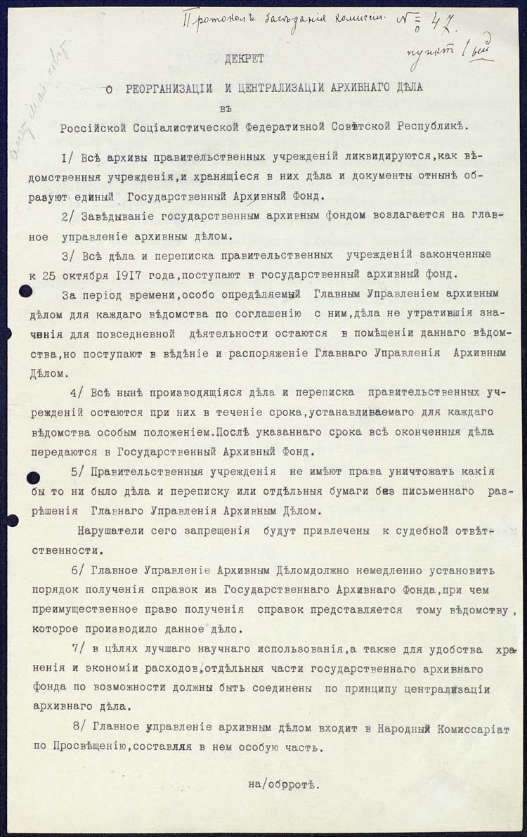 Начало строительства архивной службы в нашей стране было положено декретом Совета Народных Комисаров (СНК) РСФСР от 1 июня 1918 года «О реорганизации и централизации архивного дела». В основу системы организации архивного дела был положен принцип централизации управления и создания Единого государственного архивного фонда. Главное управление архивным делом входило на правах особой части в Народный комиссариат по просвещению и получило право по контрою за сохранностью документов с момента их образования в делопроизводстве учреждений и за соблюдением установленных сроков передачи документов из учреждений в государственные архивы. Архивным делом Московской губернии в 1918-1919 годах ведала Губернская комиссия по охране памятников старины, искусства и природы. Масштаб архивного строительства и состояние архивов на местах настоя-тельно диктовали необходимость создания специального органа руководства архивным делом в масштабах всей губернии. Согласно декрету СНК РСФСР от 31 марта 1921 года все архивы, находящиеся в губерниях, составляли по каждой губернии единый губернский архивный фонд. Московский губернский архивный фонд начал свою деятельность в марте 1919 года. Его основу составили документы Московского губернского архива старых дел. Для руководства губернскими архивными фондами Народный комиссариат просвещения в 1921 году издал Положение о губернских архивных управлениях. Осенью 1921 года на 1-й Всероссийской конференции архивных работников было отмечено неудовлетворительное состояние архивного дела на местах и принято решение об изменении положения архивных органов в системе государственного аппарата. Постановлением Президиума ВЦИК от 26 ноября 1921 года Центрархив РСФСР переводится в ведение ВЦИК РСФСР. Соответственно губернские архивные управления были выведены из состава губотделов народного образования и, получив название «архивных бюро», обрели статус самостоятельных отделов исполкомов. Московское губернское архивное бюро непосредственно входило в состав Центрархива РСФСР до конца 1923 года. В 1924 году в Московской губернии функционировало 9 уездных отделений архивного бюро. К концу 1927 года архивы имелись во всех семнадцати уездах губернии. Таким образом, датой создания архивной службы Московской области принято считать 1 января 1924 года, когда Московское губернское архивное бюро (Мосгубархбюро) стало самостоятельным архивным учреждением. Мосгубархбюро действовало при секретариате президиума исполкома Моссовета и имело двойное подчинение: с одной стороны, Центрархиву РСФСР, с другой — исполкому Моссовета. Ещё до образования в октябре 1929 года Московской области Московское губернское архивное бюро 16 июля 1929 года было преобразовано в Московское областное архивное бюро (Мособлархбюро). 20 мая 1932 г. вышло в свет Положение ВЦИК и СНК РСФСР о краевых (областных) архивных управлениях и архивах, согласно которому Московское областное архивное бюро было преобразовано в Московское областное архивное управление (Мособлархив). Перед управлением ставилась задача по организации районных архивов. Постановлением Президиума Мособлисполкома от 29 марта 1935 г. были созданы сразу 64 районных архива. После включения архивной службы в структуру органов внутренних дел в феврале 1939 года Московское областное архивное управле