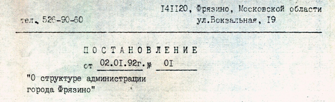 ФМА, ф. № 75, оп. № 1, д. № 1, л. 1-3) «В 1992 году прошло разгосударствление предприятий торговли, общественного питания и бытового обслуживания населения. Необходимо было осуществлять контроль обеспечения сохранности архивных документов ликвидирующихся предприятий, проверять условия их хранения и проведения их упорядочения. Самыми ответственными оказались руководители Фрязинского смешанного торга. Они наняли специалистов по обработке архивных документов, которые в полном объеме подготовили документы по личному составу к передаче на хранение в архивный отдел, составили описи дел, историческую справку к фонду. Руководству управления бытового обслуживания населения оказывали практическую помощь. Помогали формировать дела, составляли историческую справку, описи. Совсем плохо обстояло с документами Фрязинского треста столовых. Их пришлось собирать полистно в административном здании треста, помещениях бывшего ресторана «Фрязино», самим проводить упорядочение.» В 1994 -1996 годах на хранение в архивный отдел поступили документы: предприятий торговли города Фрязино за 1952-1992 гг. (486 ед.хр.), предприятий общественного питания города Фрязино за 1988-1992 гг. (29 ед.хр.), предприятий бытового обслуживания населения города Фрязино за 1974-1992 гг. (87 ед.хр.). С 1995 года в архивный отдел поступают документы по личному составу ликвидированных муниципальных и коммерческих предприятий (арендных предприятий, товариществ и обществ с ограниченной ответственностью, смешанных товариществ, малых семейных предприятий, акционерных обществ, кооперативов, индивидуальных частных предприятий и др.). В 1995 году архивному отделу была выделена дополнительная штатная единица. 11 сентября 1995 года на должность архивариуса архивного отдела принята Павлова Нина Андреевна (ФМА, ф. № 75, оп. № 2л/с, д. № 37, л. 82). В начале 1998 года, в соответствии с новой структурой администрации города, архивный отдел преобразован в архивный сектор, штат сектора — 2 единицы: главный специалист и специалист II категории. В 1998-1999 года работники архивного сектора прошли обучение работы на компьютере, организованное руководством администрации города на базе информационно-аналитического отдела. С этого времени оформление документов (описи, исторические справки и др.) стало производиться в электронном виде с использованием компьютеров информационно-аналитического отдела. С этого момента началось изучение и внедрение в практику работы сектора компьютерной ведомственной программы «Архивный фонд». С середины 90-х годов архив оказывал платные услуги по хранению документов по личному составу ликвидированных предприятий. Прейскурант цен утверждался распоряжением Главы города. В 1999 году на хранение поступили документы по личному составу АООТ «ЭлП». В качестве платы за хранение архивных документов в течении 75 лет архив получил электрическую дрель (так необходимую для сшивки документов!) и 100 архивных коробок для хранения документов. К 2000 году в архиве насчитывалось 76 фондов (из них 65 фондов документов по личному составу предприятий, прекративших свою деятельность), 4 528 единиц хранения. В 2001 году архивный сектор заработал 13 742 рубля. В этом же году оказание платных услуг было прекращено. В 2001 году город отмечал свое 50-летие. К этой дате архивным сектором была подготовлена статья «История города Фрязин