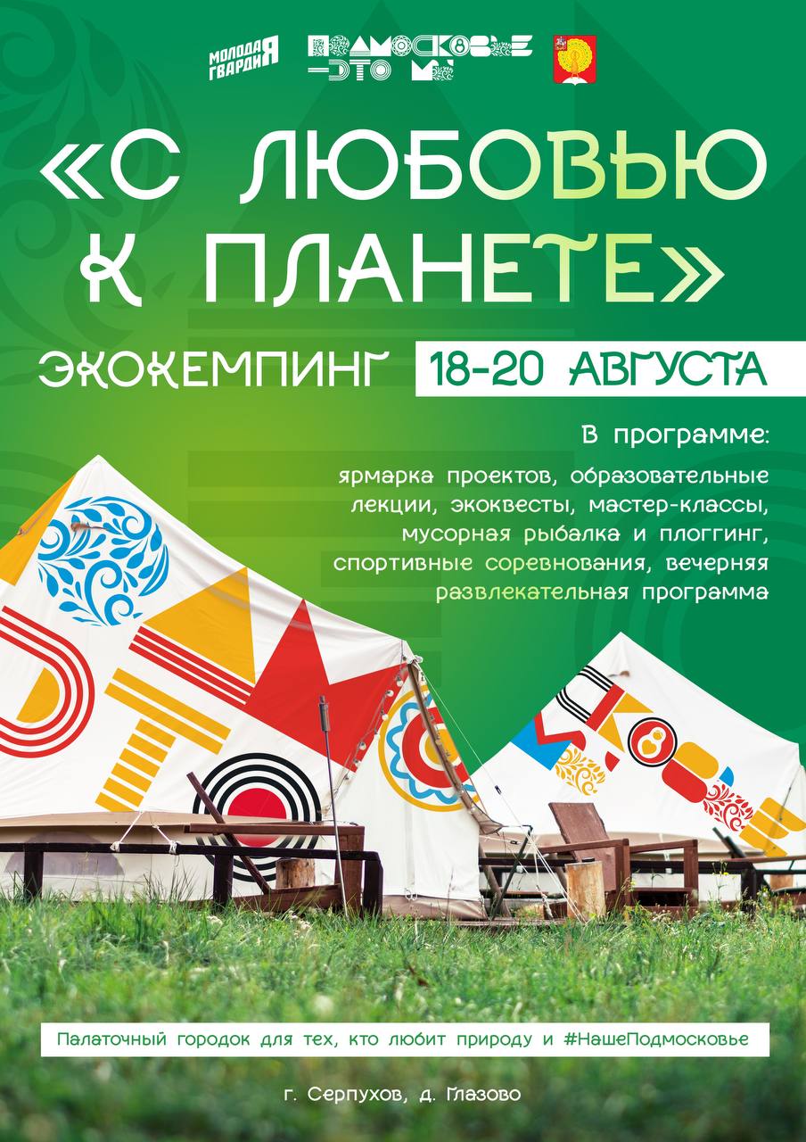 С 18 по 20 августа в Серпухове развернется палаточный городок с насыщенной образовательно–практической программойЛюбишь турпоходы? Реализуешь экопроекты? Хочешь внести свой вклад в сохранение экосистемы Подмосковья? Ждем тебя на ежегодном экокемпинге #СЛюбовьюКПланете! С 18 по 20 августа в Серпухове развернется палаточный городок с насыщенной образовательно–практической программой. Будем говорить об инициативах и проектах в области экологии, развитии экотуризма, осознанном образе жизни и делиться своим опытом. Тебя ждут образовательные лекции, мастерская ресайклинга, ярмарка проектов, центр приема вторсырья и своп одежды, а еще творческие вечёрки, водяные битвы и песни у костра! Если тебе исполнилось 18 лет и ты уже начал собирать чемодан, не забудь пройти регистрацию! |