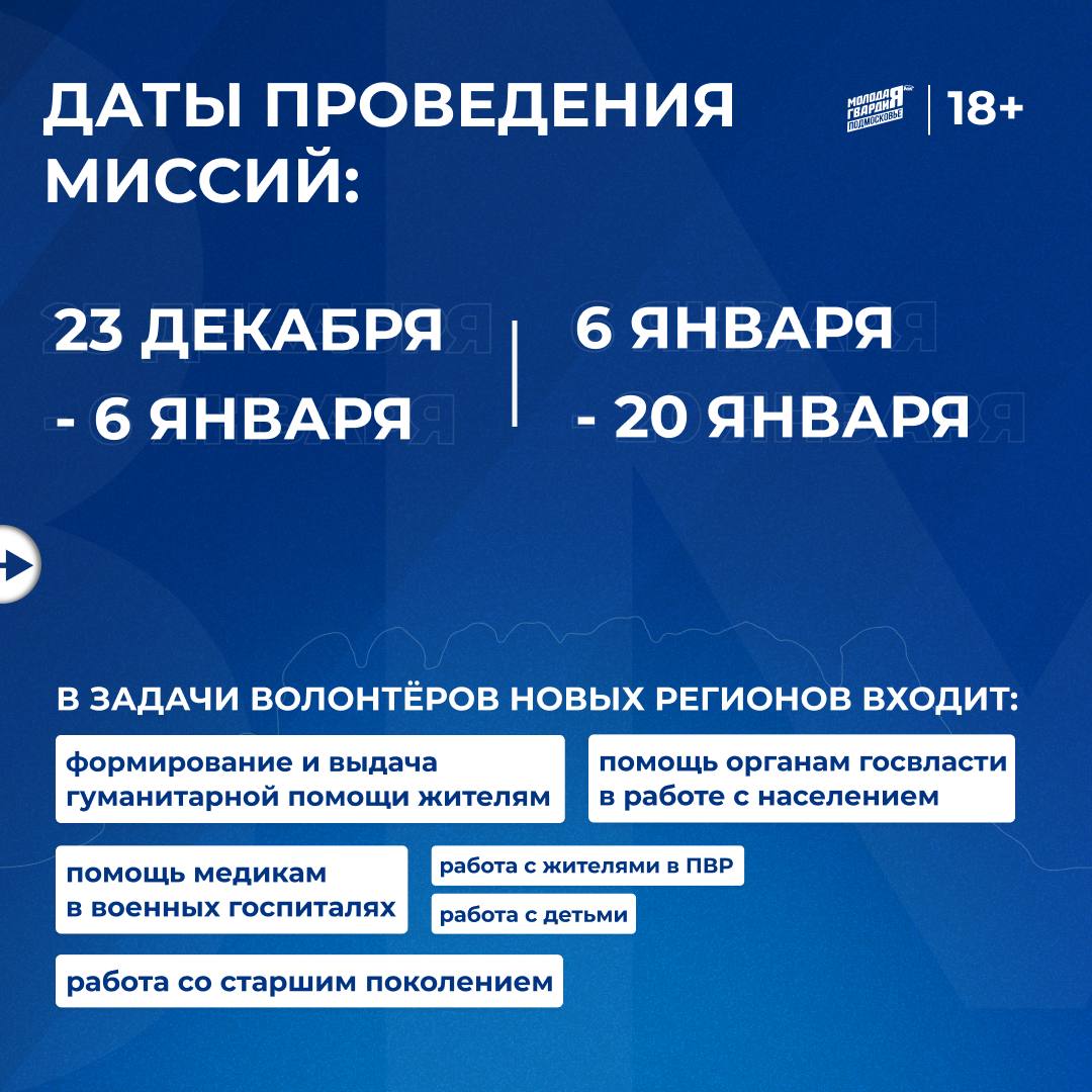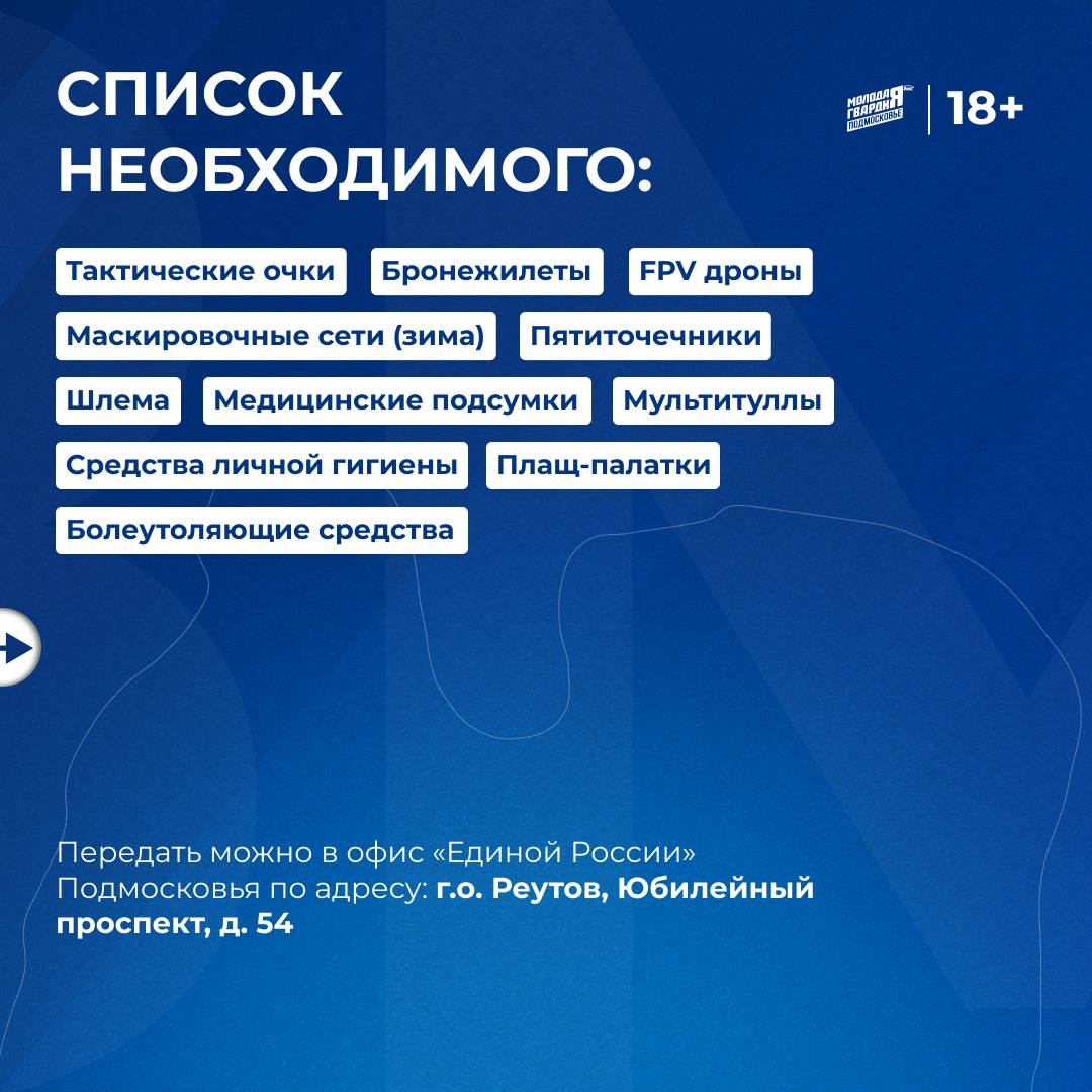 Декабрь — время чудес и новых возможностей!Приглашаем вас встретить 2025 год необычно — в волонтерском центре МГЕР в Курске или на новых территориях. 1️⃣Творческий новогодний лагерь: Молодая Гвардия формирует педагогические отряды, чтобы каждый ребенок почувствовал праздник! Ищем волонтёров с готовыми программами: театры, анимации, концерты. 🗓️ Даты: по согласованию с вашими программами. 🏠 Проживание и питание на базе центра. 🔺 Хочешь с нами? Регистрация здесь! (18+) 2️⃣ Волонтерский отряд в Курске: Молодогвардейцы со всей страны работают с эвакуированными жителями, доставляют гуманитарную помощь и помогают в госпитале. 🗓️ Даты миссий: • 15-29 декабря • 29 декабря - 12 января 🔺 Хочешь с нами? Регистрация здесь! (18+) 3️⃣ Волонтёрские миссии в новые наши регионы: 🗓️ Даты миссий: • 23 декабря - 6 января • 6 - 20 января «Молодая Гвардия Единой России» предоставляет всё необходимое для поездки, включая трансфер, питание и проживание. 🎁 Также готовим «Новогодний» гуманитарный конвой для наших бойцов. Что необходимо нашим солдатам? - Тактические очки; - Бронежилеты; - FPV дроны; - Маскировочные сети (зима) - Пятиточечники; - Шлема; - Медицинские подсумки; - Мультитуллы; - Средства личной гигиены; - Болеутоляющие средства; - Плащ-палатки. Принести можно до 30 декабря в офис «Единой России» Подмосковья. Адрес: г.о. Реутов, Юбилейный проспект, д. 54. Давай сделаем этот Новый год особенным для всех! ❤️ |