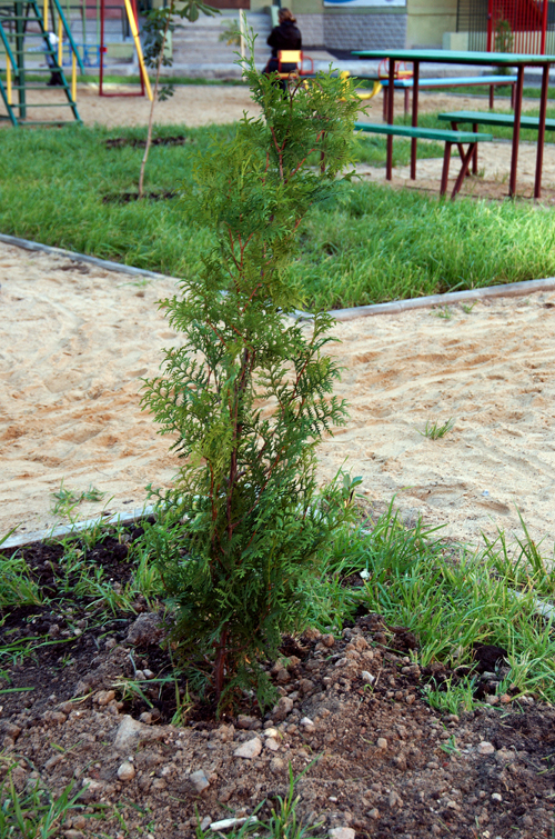 Работы по озеленению городских улиц продолжаюся. Первый этап начался весной. Усилиями специалистов Отдела ЖКХ, транспорта и связи администрации Фрязино и управляющих компаний было посажено более трехсот деревьев. Во втором этапе посадки велись в районе новостроек по улицам Октябрьской и Лесной. Дворовые территории и улицы этого микрорайона, расположенного около Дворца культуры «Исток», украсили более четырехсот деревьев и кустарников. Ассортимент зеленых насаждений более чем богатый — тринадцать наименований: липы, кедры, дубы, туи. Несколько туй посадил лично глава Фрязино Владимир Ухалкин.