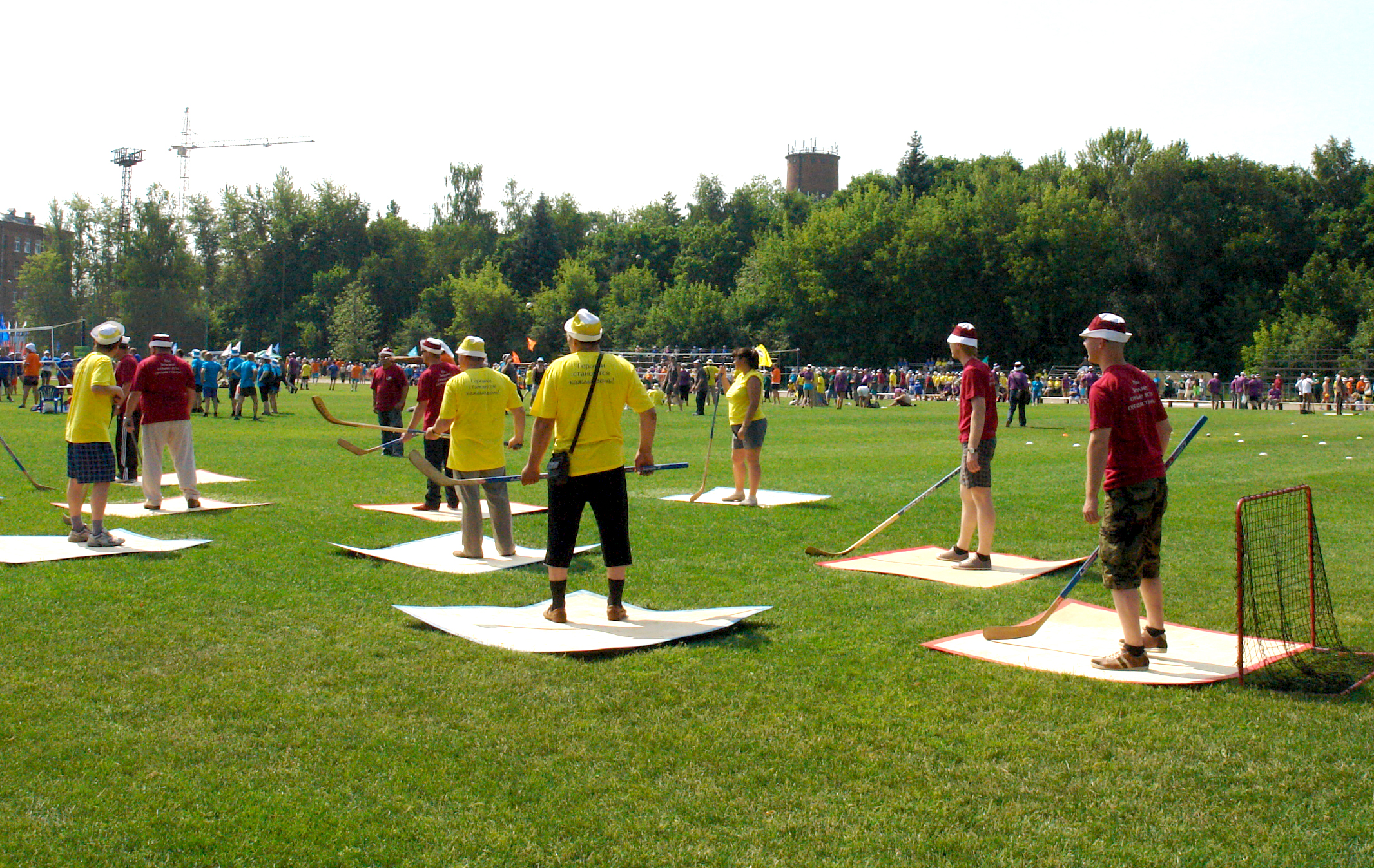 ![]() Огромный стадион «Олимпа» пестрел всевозможными площадками для спортивных соревнований: тут играли в футбол, баскетбол и волейбол, поднимали гири и чеканили мяч, стреляли из огромных рогаток по мягким игрушкам и попадали в мишень, состязаясь в кёрлинг. Каждый мог найти себе занятие по душе: для любителей тихих игр были организованы чемпионаты по шашкам, шахматам и домино. Тонкие художественные натуры разрисовывали из баллончиков с краской специальный забор и примеряли на себя роль профессионалов граффити. В многочисленных шатрах проходили творческие мастер-классы для желающих научиться расписывать пряники и горшки, делать оригами из бумаги, создавать тряпичных кукол и открытки счастья. Все сделанные собственноручно творения авторы забирали себе на память.