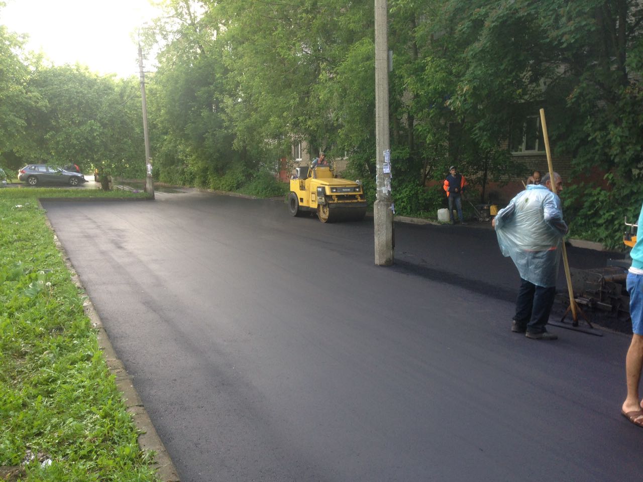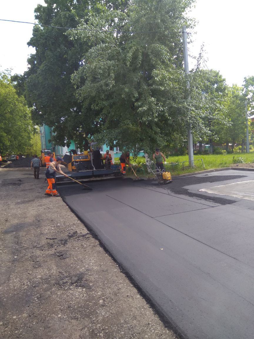 Укладка нового асфальтового покрытия во дворе дома 2 на ул. Проспект мира.