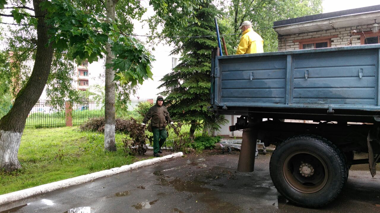 Уборка распиленных деревьев на территории Дома ребенка.