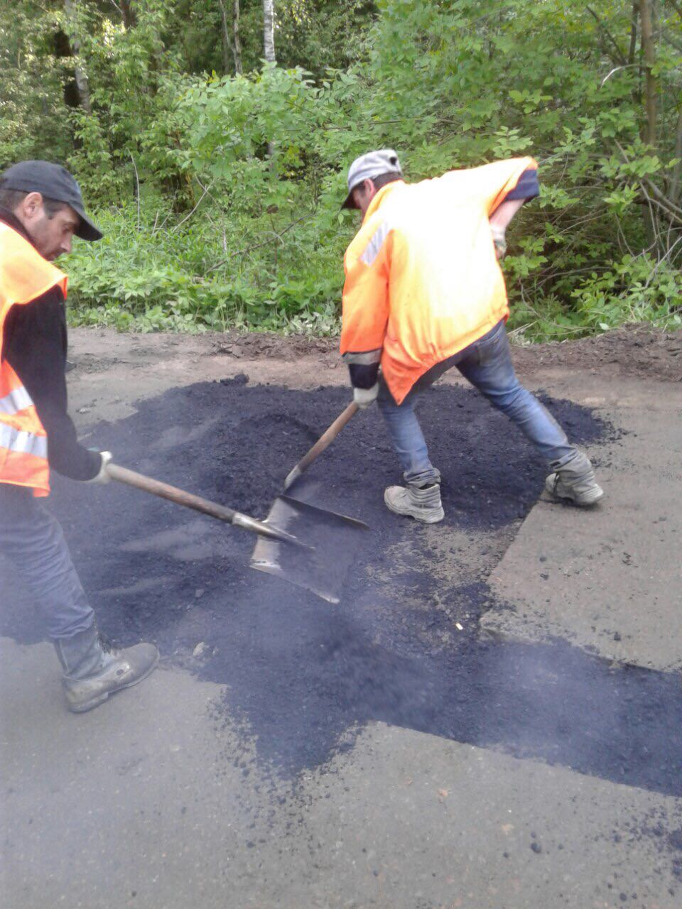 Ямочный ремонт на дороге к кладбищу.