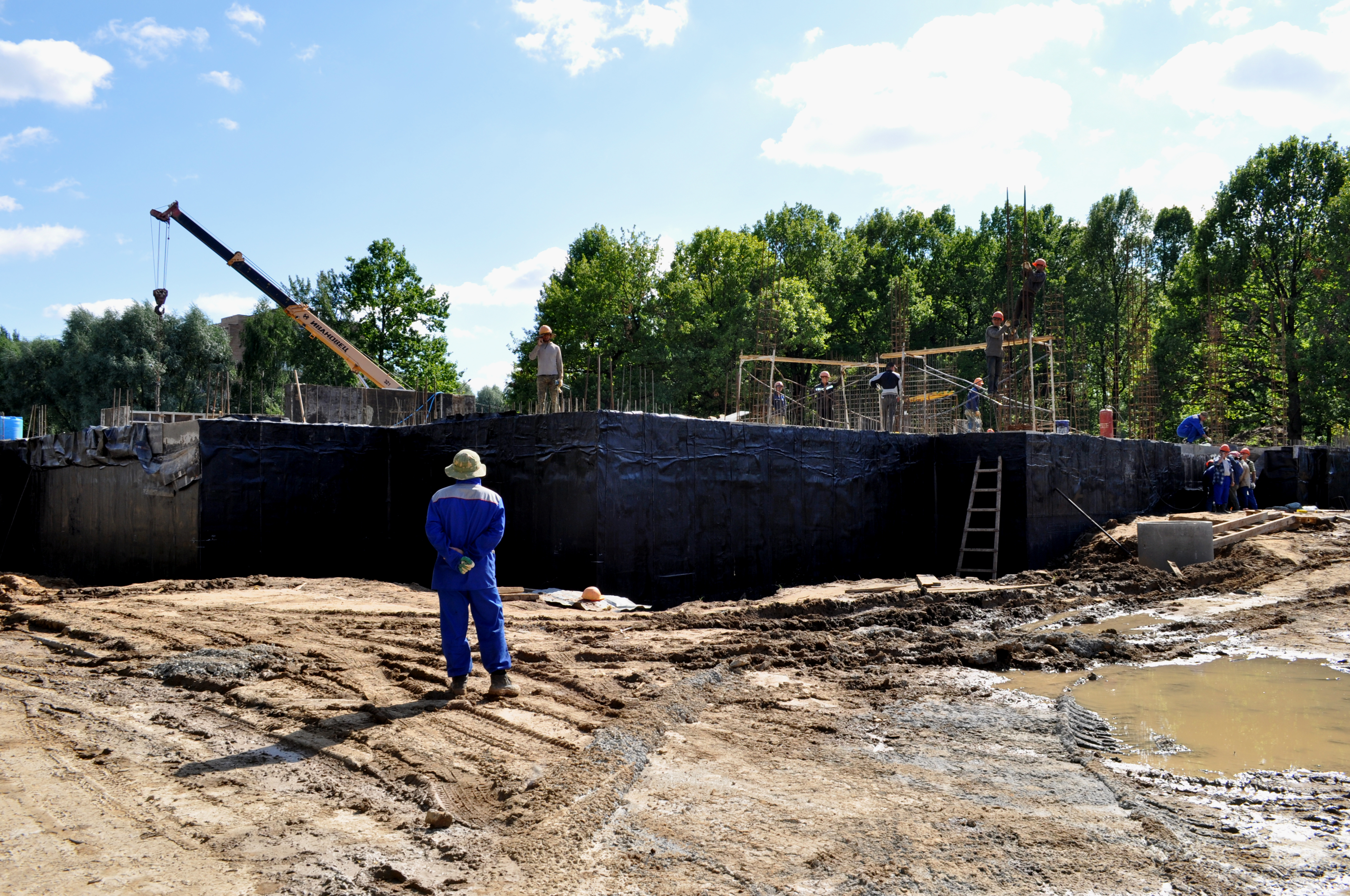 Возведение физкультурно-оздоровительного комплекса идет по графику. На данный момент уложен плитный фундамент, сделан дренаж, выполнены бетонная подготовка и гидроизоляция, возведены стены цокольного этажа, колонны, диафрагмы жёсткости, частично выполнено бетонирование чаши бассейна. До декабря 2017 года строительство должно завершиться.