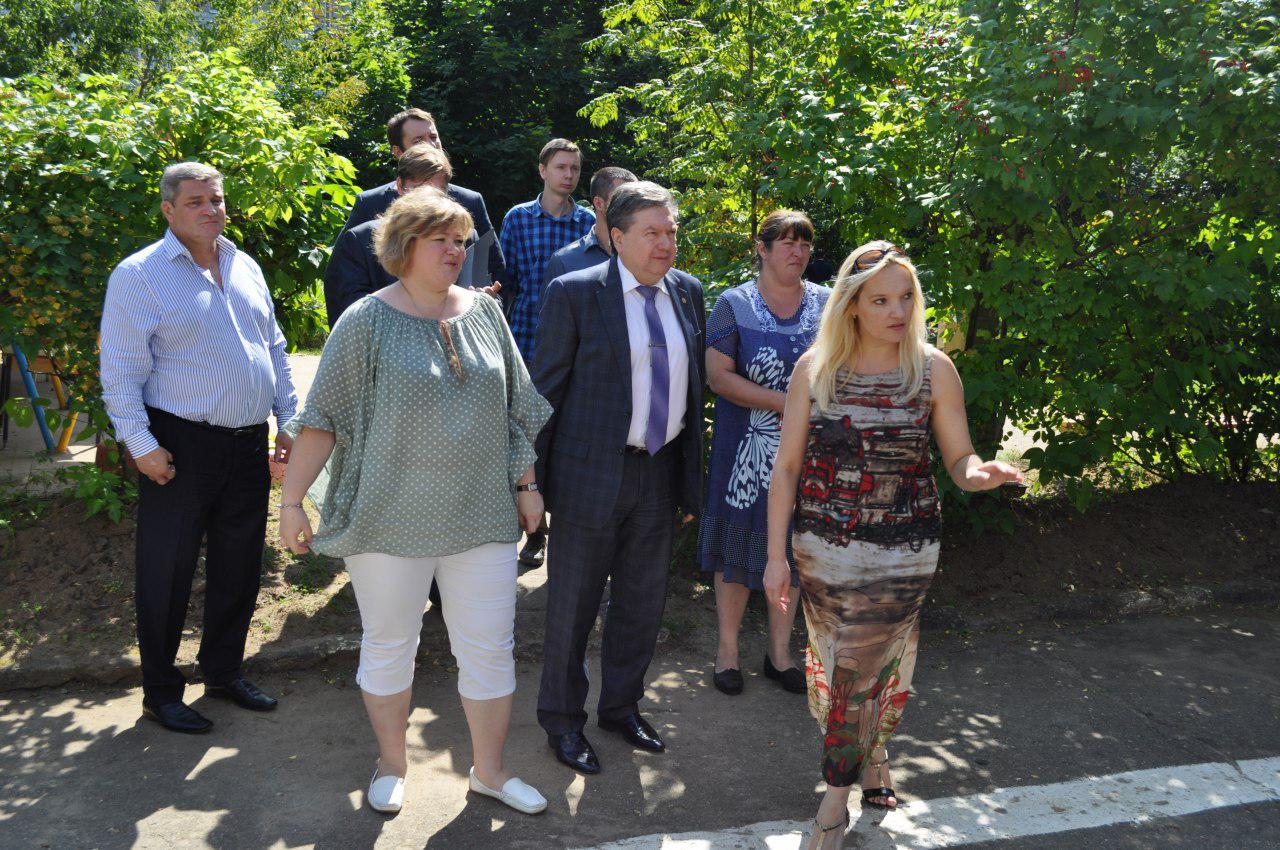 Рабочий выезд главы города Фрязино Игоря СергееваСостоялся рабочий объезд под руководством главы города Фрязино Игоря Сергеева, который по просьбам жителей проинспектировал состояние детских площадок, их освещения, а также проверил, насколько успешно ведется борьба с несанкционированной рекламой. Однако начался объезд с визита в детский сад комбинированного вида №10, где недавно состоялся праздник, День урожая. В то же время в учреждении накопилось много проблем, которые отметила директор детского сада: необходимо заасфальтировать дорогу на территории сада, поставить лежачий полицейский на въезде, переложить разваливающиеся ступени на главном входе, благоустроить участки и клумбы. Кроме того, из-за протекающей крыши в здании отсырела побелка на стенах, которую нужно менять. Глава города Игорь Сергеев предложил представителям МБУ «Городское хозяйство» в ближайшее время начать работы и систематически докладывать об их результате.