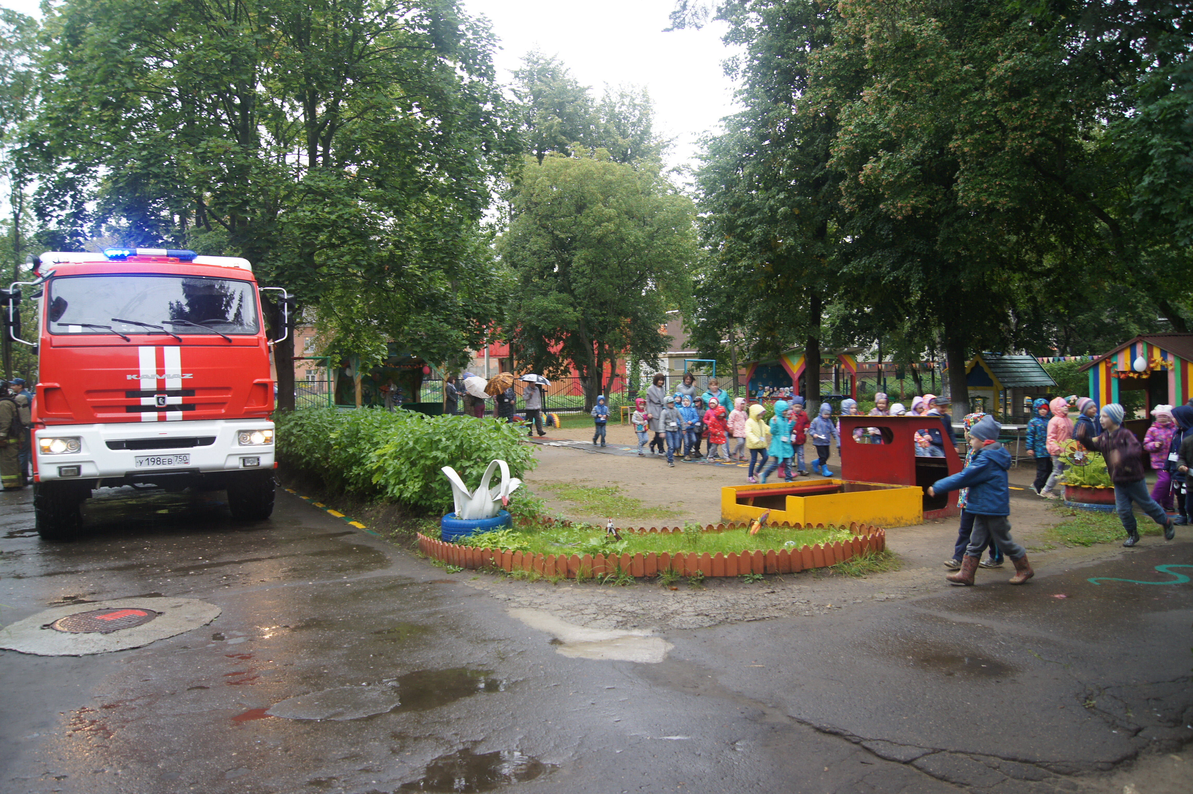 5 сентября в МДОУ №4 прошли пожарно-тактические учения. По легенде на первом этаже в игровой комнате по причине короткого замыкания электропроводки произошло возгорание. Персоналом предпринимались меры к самостоятельному тушению пожара, но они не дали результатов. Руководитель добровольного пожарного формирования через систему 112 сообщил о возгорании в пожарную охрану и руководству объекта, после чего приступил к эвакуации детей и персонала детского сада. Прибывший дежурный караул ПЧ-78 приступил к тушению пожара.
