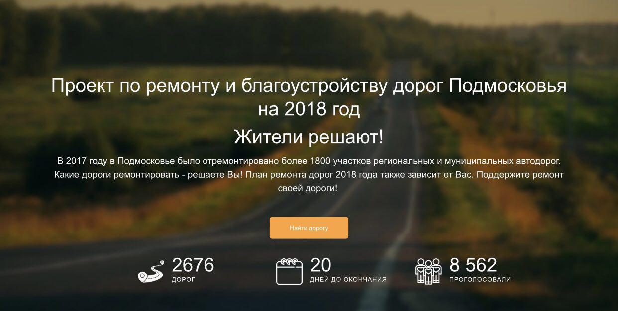 Голосование на портале "Добродел" продолжаетсяНа портале "Добродел" в разделе "дороги" https://dobrodel.mosreg.ru/dorogi/ проходит голосование по включению участков в ремонт на 2018 год. Проголосовать жители могут как за региональные, так и за муниципальные дороги. Фрязинцы могут проголосовать за ремонт дороги на улице Заводской проезд. Призываем проголосовать за участок, который по-настоящему нуждается в реконструкции и является важнейшей для города трассой. Голосование на портале «Добродел» стартовало 25 декабря и продлится до 1 февраля. На голосование выставлено более 2,6 тыс. участков дорог: более 700 региональных и свыше 1970 муниципальных. Дороги, получившие наибольшую поддержку и прошедшие анализ, будут отремонтированы в этом году. Чтобы оставить свой голос необходимо выбрать на карте свой муниципалитет и на вкладке «дороги на голосование» выбрать участок. Также на портале опубликованы дороги, уже включенные в программу ремонта на 2018 год. Каждый житель может отдать свой голос за одну дорогу, а также оставить комментарий с фотографией по участкам, вошедшим в программу 2018 года. ![]() |