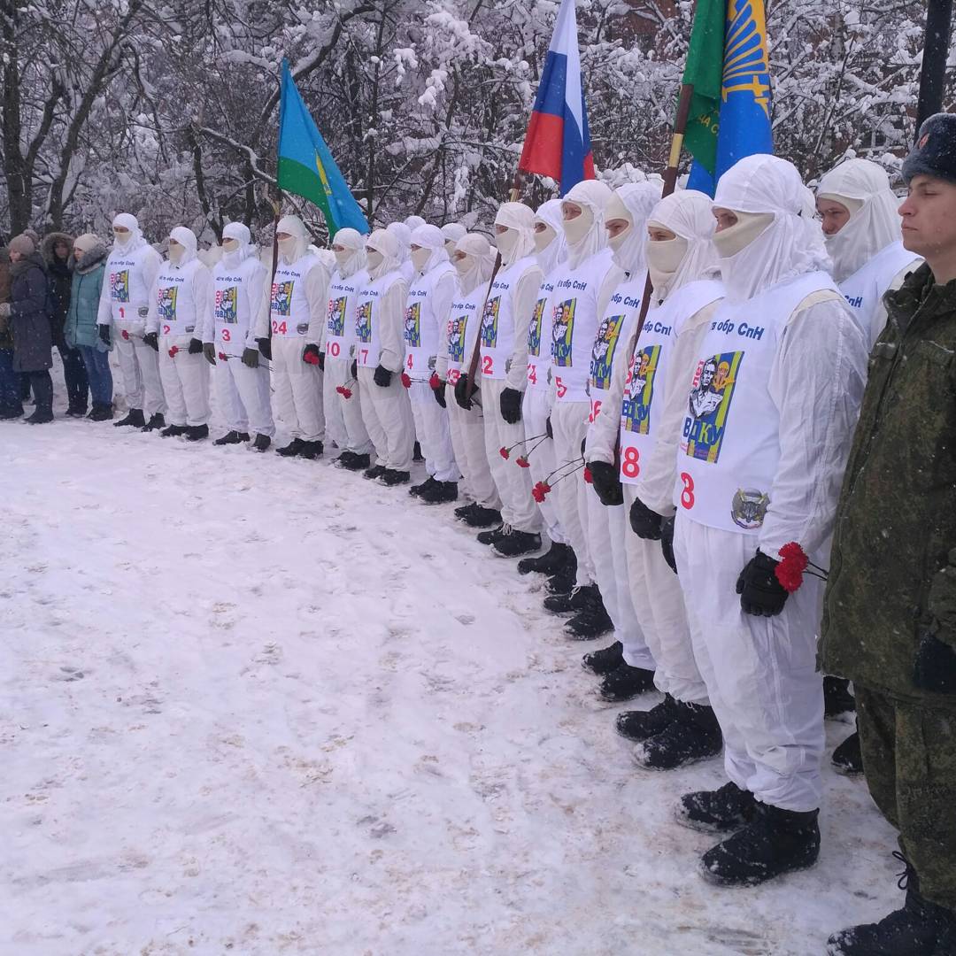 Сегодня во Фрязино прошли мероприятия, приуроченные к 100-летию Рязанского высшего командного училища ВДВ имени генерала армии В.Ф. Маргелова и посвященные сверхдальнему лыжному переходу десантников 45-й гвардейской орденов Кутузова и Александра Невского бригады специального назначения воздушно-десантных войск вооруженных сил Российской Федерации.