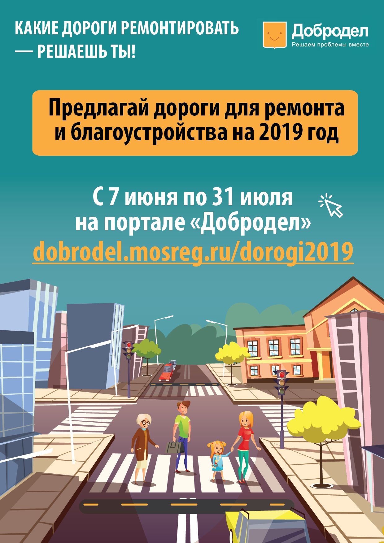 Уже завтра завершается сбор предложений на портале «Добродел». Успейте предложить «свою» дорогу для ремонта и благоустройства на 2019 год. Именно Ваше активное участие может повлиять на список дорог, которые примут участие в последующем голосовании! |