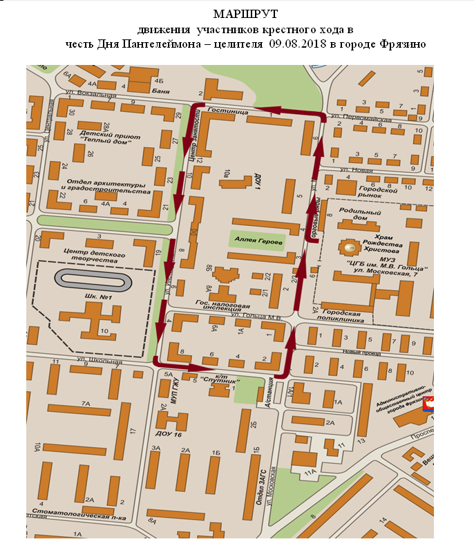 Время проведения крестного хода - с 11.30 до 12.30. Маршрут движения - от храма Рождества Христова в городе Фрязино по улицам Московская, Вокзальная, Институтская, Школьная, Московская - до храма Рождества Христова. Предполагаемое количество участников - до 1000 человек. С 10.45 до 12.45 временное ограничение движения будет введено в городе Фрязино по улицам Московская (от улицы Школьная до улицы Вокзальная) , Вокзальная (от улицы Московская до улицы Центральная), Институтская, Школьная (от улицы Институтская до улицы Московская). |