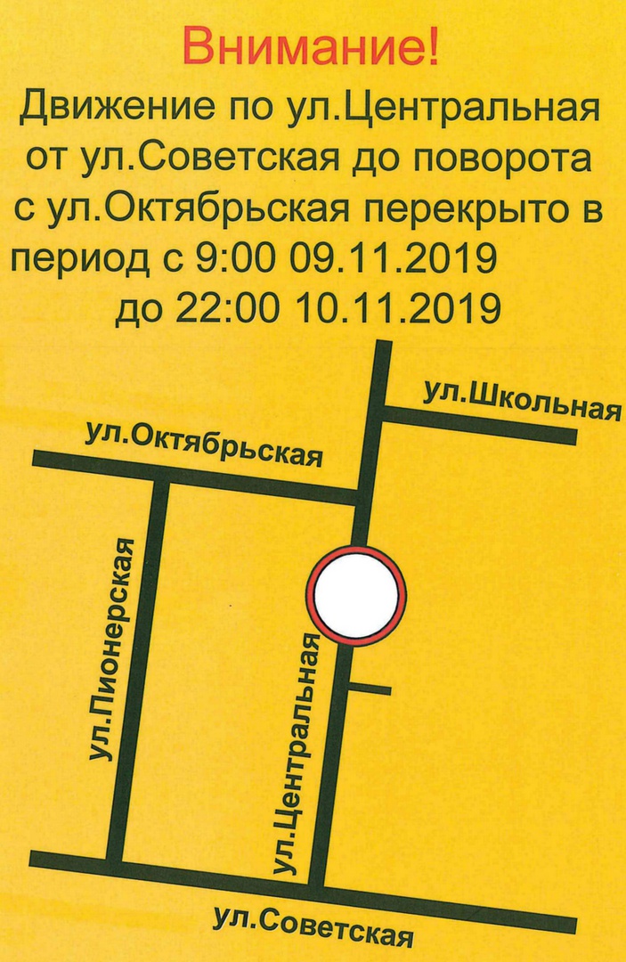 ››› Перекрытие дороги по ул. Центральная от ул. Советская до поворота с ул. Октябрьская