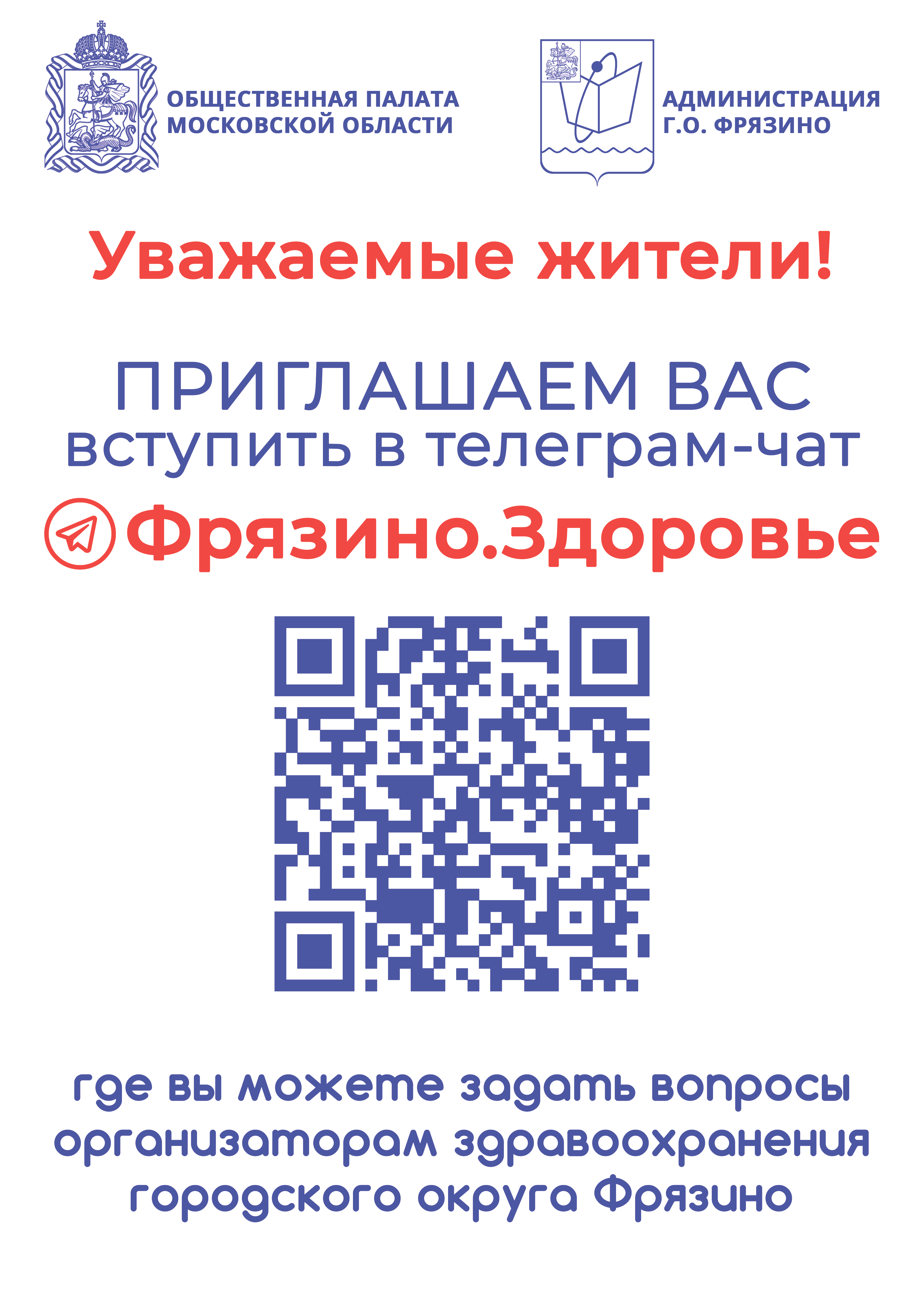 ››› Уважаемые жители городского округа Фрязино! Информируем вас о работе открытого городского телеграм-чата по вопросам качества и доступности медицины округа.