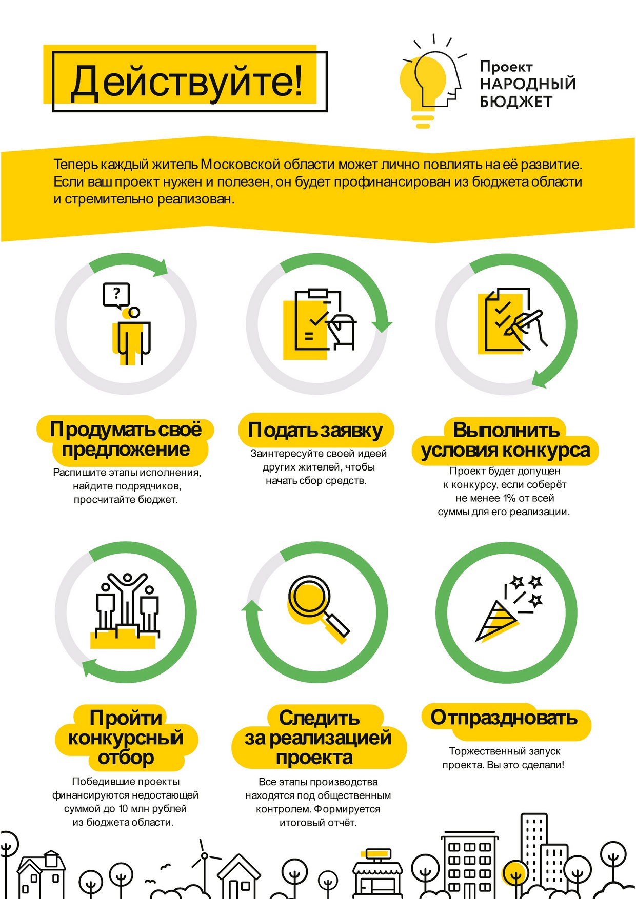 Конкурс проектов инициативного бюджетированияЖители городского округа Фрязино могут стать участниками областного мероприятия «Реализация практик инициативного бюджетирования на территории муниципальных образований Московской области» Конкурс проектов инициативного бюджетирования продолжает традиции ежегодного поиска новых идей инициативных граждан, решений, к которым пришли неравнодушные люди для решения проблем своих поселений. Инициативное бюджетирование – это новый механизм работы, который позволяет жителям вместе с органами местного самоуправления реализовывать интересные и важные проекты путём выдвижения инициатив по целям расходования определённой части бюджетных средств. Предлагать можно разное — от строительства дорог или благоустройства до финансирования ремонта школ и детских садов. В проекте должно быть описание проблемы, решение которой имеет приоритетное значение для жителей, обоснование предложений и описание ожидаемого результата. Отобранные проекты выносятся на общественное голосование, после чего инициативные граждане участвуют в составлении сметы проекта, а при необходимости – в его софинансировании. Ход выполнения работ контролируют сами граждане, выступившие его инициаторами. В соответствии с Распоряжением Главного управления территориальной политики Московской области от 23.11.2020 №22 «Объявление о проведении конкурсного отбора проектов инициативного бюджетирования в Московской области в 2021 году» установлены сроки приёма проектов инициативного бюджетирования для участия в муниципальном конкурсном отборе на территории городского округа Фрязино Московской области в 2021 году: · дата начала приёма проектов – 01.12.2020; · дата окончания приёма проектов – 14.12.2020. Приём проектов осуществляется путём их размещения на портале «Добродел» dobrodel.mosreg.ru После окончания приёма проектов проводится голосование. В голосовании смогут принять участие жители городского округа Фрязино, зарегистрированные на портале «Добродел». Установлены сроки проведения голосования жителей за проекты инициативного бюджетирования: · дата начала проведения голосования – 15.12.2020; · дата окончания проведения голосования – 24.12.2020. При возникновении вопросов Вы можете обратиться в комитет по экономике администрации г.о. Фрязино по телефону: |