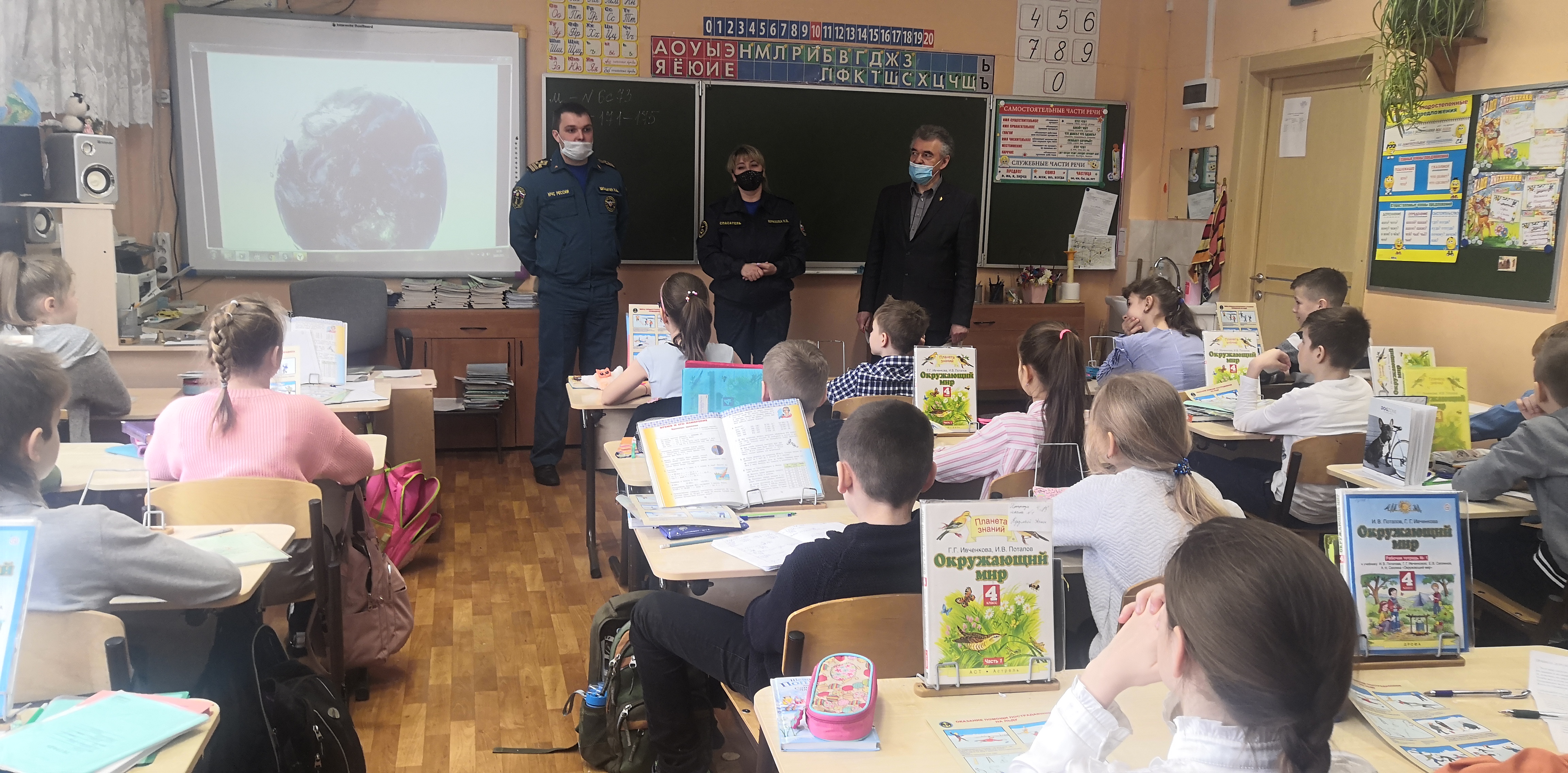 Безопасность на льду и Система-112 в МОУ СОШ №1 16 марта 2021 года работники МКУ «ЕДДС г. Фрязино» Морозов А.Л., Пискунова И.В., спасатель водно-спасательного поста озеро «Большое» Юракова Н.В. и гос. инспектор Центрального инспекторского отделения ГИМС ГУ МЧС России по МО Владыкин М.В. провели занятие с учащимися МОУ СОШ №1 г. Фрязино 9Г класса, МОУ СОШ №1 г. Фрязино 4В класса. Спасатели рассказали об основных правилах соблюдения мер безопасности и поведения на льду, как оказать помощь пострадавшему, рассказали о назначении и целях создания Системы-112 на территории Московской области, о возможностях мобильного приложения "112", продемонстрировали видео-ролики «112», раздали памятки и листовки о «Мерах предосторожности и правилах безопасного поведения на льду», «Система-112» ответили на интересующие вопросы.