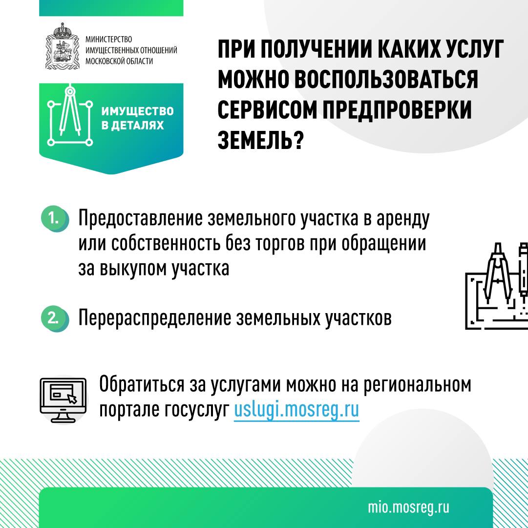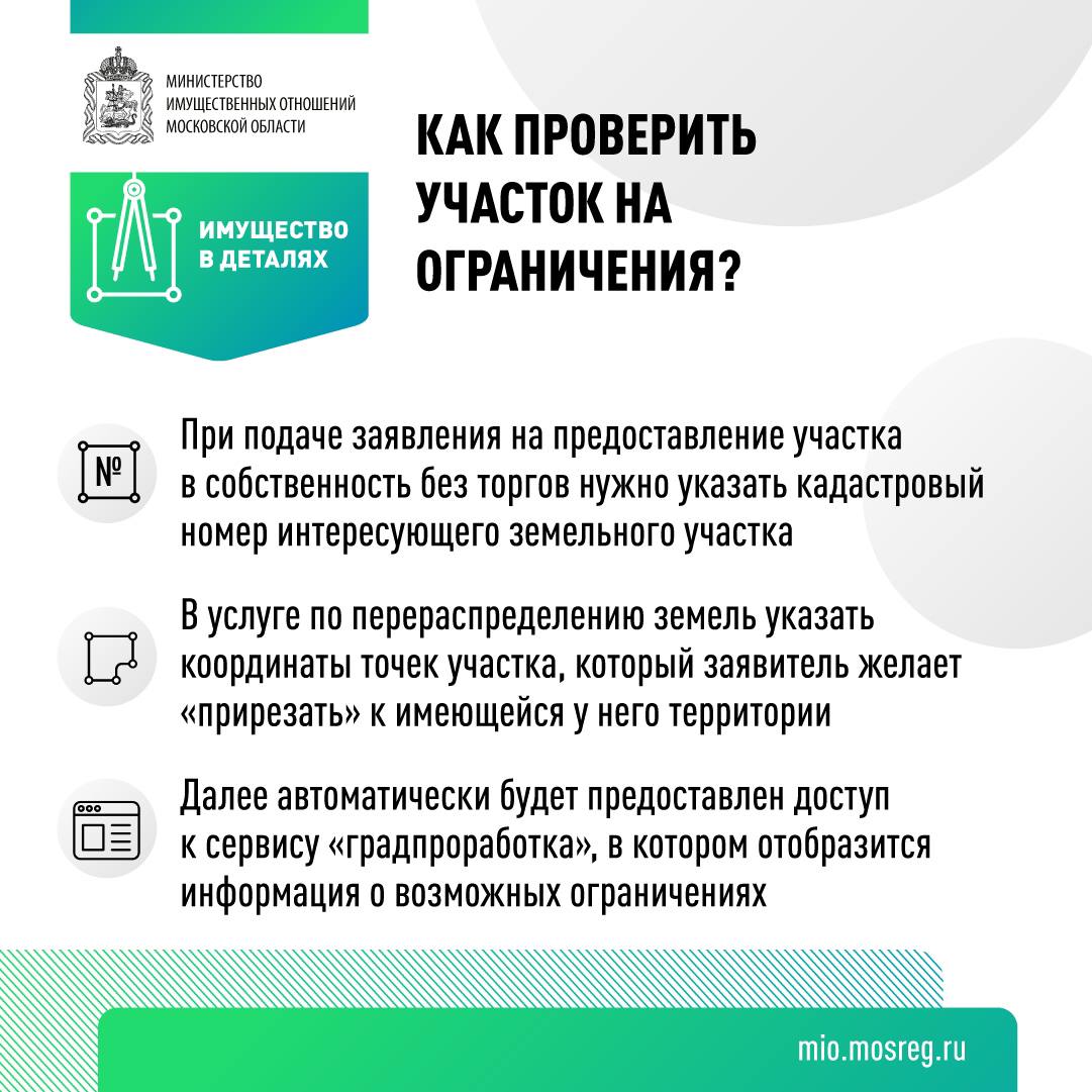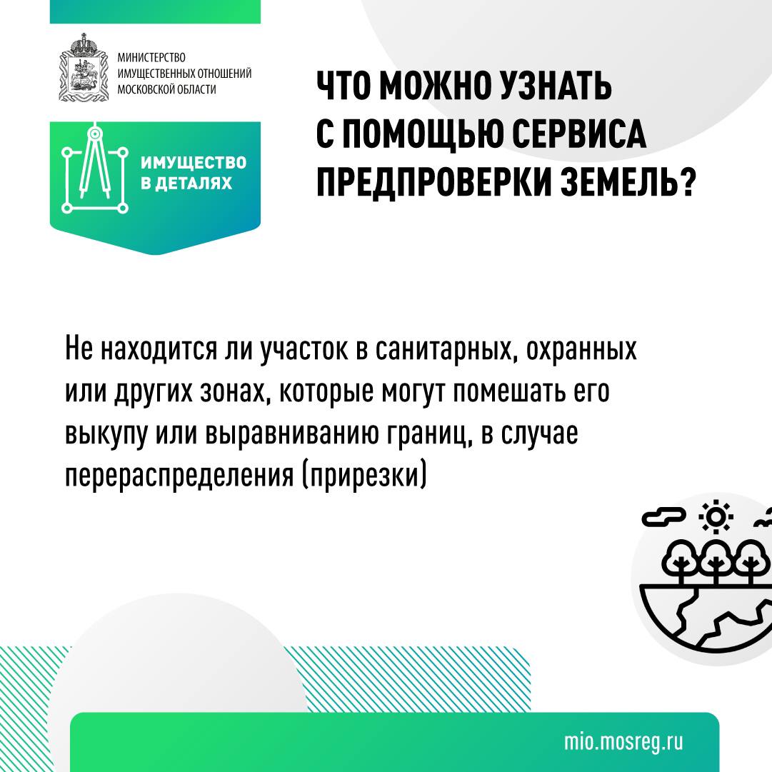 Что можно узнать с помощью сервиса предпроверки земель?В прошлом году на РПГУ мы внедрили сервис предпроверки земель, который даёт возможность гражданам определить, не попал ли тот или иной участок в зоны ограниченной оборотоспособности. И сделать это можно именно до подачи заявления на выкуп или перераспределение земли, чтобы снизить вероятность отказа по услугам до минимума. Детали - в инфокарточках. ✅Кстати, сервис предпроверки мы планируем внедрить во все наши земельные услуги! |