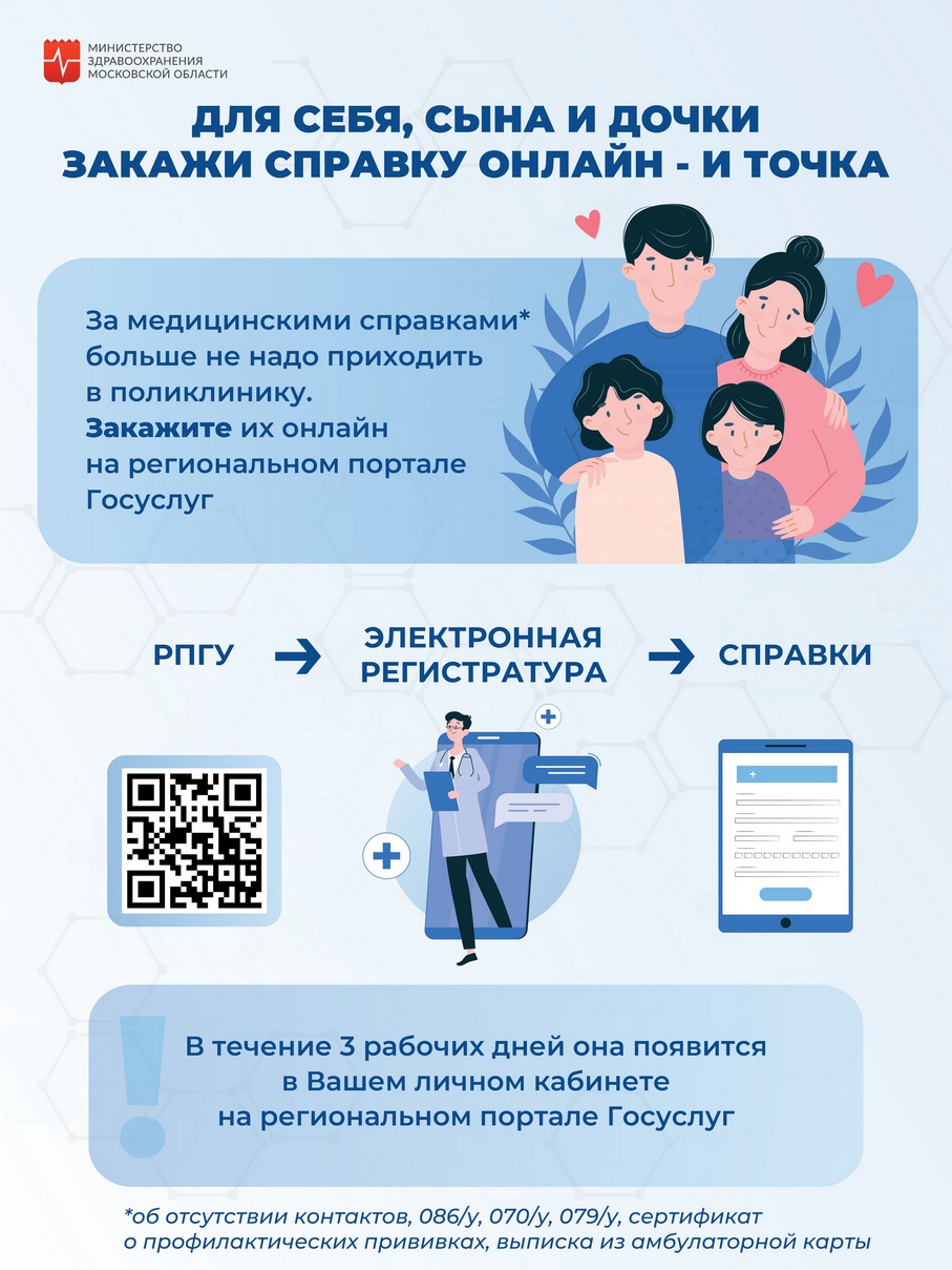 Медицинские справки доступны онлайн на региональном портале госуслуг.