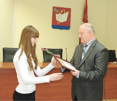 В один голос стипендиаты говорили о своей готовности покорять вершины науки и спорта и дальше, а денежную премию от главы и признание их достижений на общегородском уровне считают отличным стимулом. – Эта стипендия дает нам новые возможности, мы понимаем, что должны к чему-то стремиться, должны чего-то добиваться, – считает ученица гимназии Юлия Лучеева. – Тем более что нам пообещали увеличить стипендию до размера средней городской зарплаты. Неделей раньше, 22 апреля, в подмосковном Сергиевом Посаде прошла церемония вручения именных стипендий губернатора Московской области Бориса Громова. Более 230 молодых дарований, проживающих на севере и северо-востоке Подмосковья, а в их числе 14 ребят из Фрязино, были отмечены дипломами стипендиатов и также получили денежное вознаграждение за особые успехи в учении и спорте. Некоторые фрязинцы не в первый раз были удостоены награды губернатора Подмосковья. Так, Мария Степанова – гимнастка детско-спортивной школы, чемпионка Европы среди юниоров – трижды была отмечена на областном уровне. Поздравляя ребят с выдающимися успехами, Борис Громов напомнил, что стипендии вручаются в особый год – год 50-летия полета в космос Юрия Гагарина – первого человека, преодолевшего притяжение Земли. А церемония, состоявшаяся в Сергиевом Посаде, проходила к тому же в день, который начиная с 1970 года празднует весь мир как Международный день Земли. И это тоже символично. «Я говорю про космос неслучайно, потому что космос – это и передовые технологии, и инновационная направленность, и мне бы хотелось, чтобы вы в этом направлении принимали самое активное участие», – обратился губернатор к стипендиатам. Елена БАЛАБАНОВА. ![]() На фото: