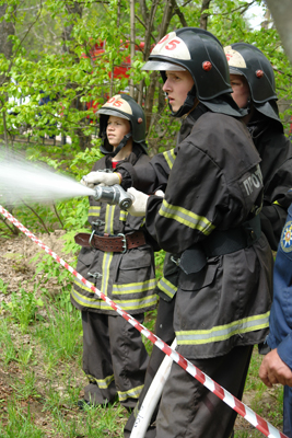 Конкурсные задания ребята отправились выполнять сразу же после слета агитбригад. Участники демонстрировали свои знания в оказании медицинской помощи, отвечали на вопросы тест-олимпиады по правилам пожарной безопасности, показывали презентацию проектов на пожарную тематику. Но самый интересный конкурс ждал ребят на спортивной площадке. Они проходили полосу препятствий, надевали боевую одежду. Работали также и с пожарным стволом: струей сбивали мишень с 15 метров, а также пробовали тушить возгорание. – Сегодняшнее мероприятие хорошо тем, что ребята проявили себя с разных сторон, – рассказывает Елена Дронова, специалист Щелковского районного отделения Всероссийского добровольного пожарного общества. – Возможно, поучаствовав в этом соревновании, они выберут специальность пожарного своей специальностью и в дальнейшем будут доблестно работать на благо пожарной охраны России.
