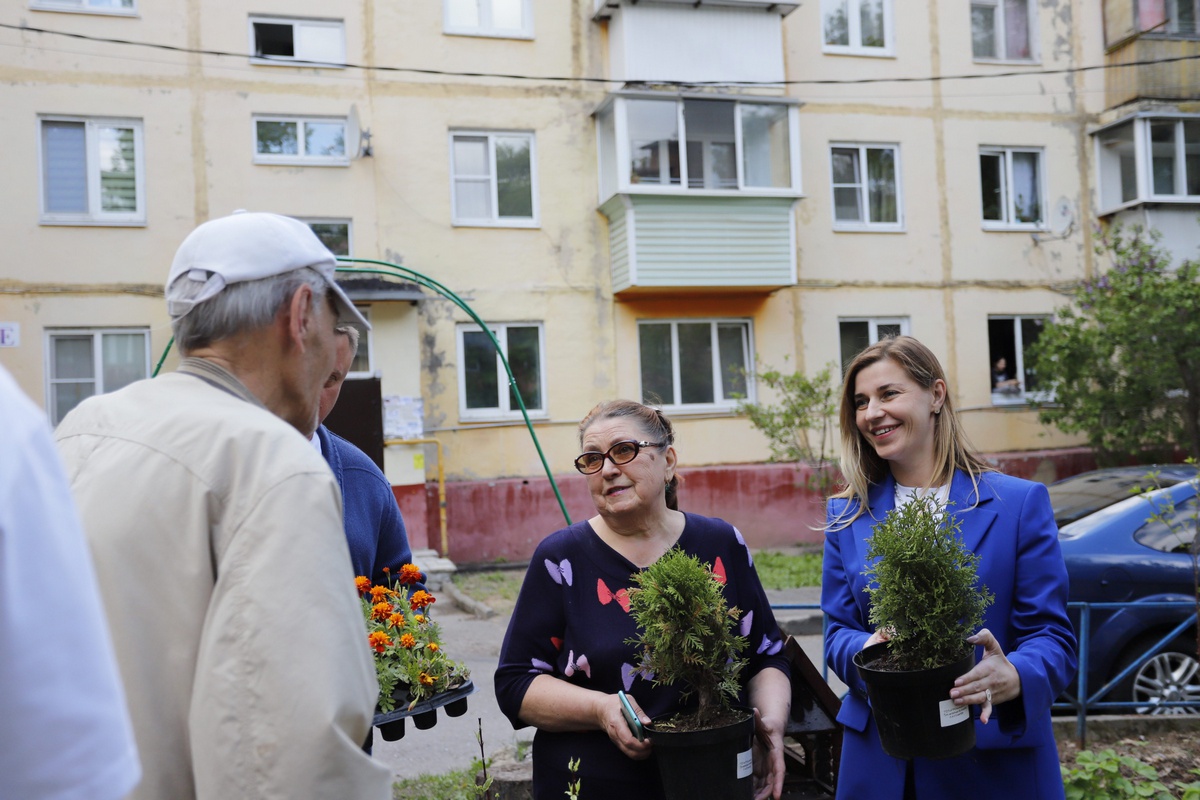 Заместитель главы г.о. Фрязино Наталия Князева, совместно с депутатом Совета депутатов Сергеем Заком и представителями МБУ «Городское Хозяйство» провела повторную встречу с жителями домов 21, 23, 27 и 29 по улице Вокзальной. На встрече обсуждали вопросы благоустройства, содержания дворовой территории и многоквартирных домов. Для благоустройства придомовой территории, по просьбам жителей, которые были озвучены на предыдущей встрече, Наталия Князева совместно с МБУ «Городское Хозяйство» привезли в подарок саженцы кустарников и рассаду цветов.